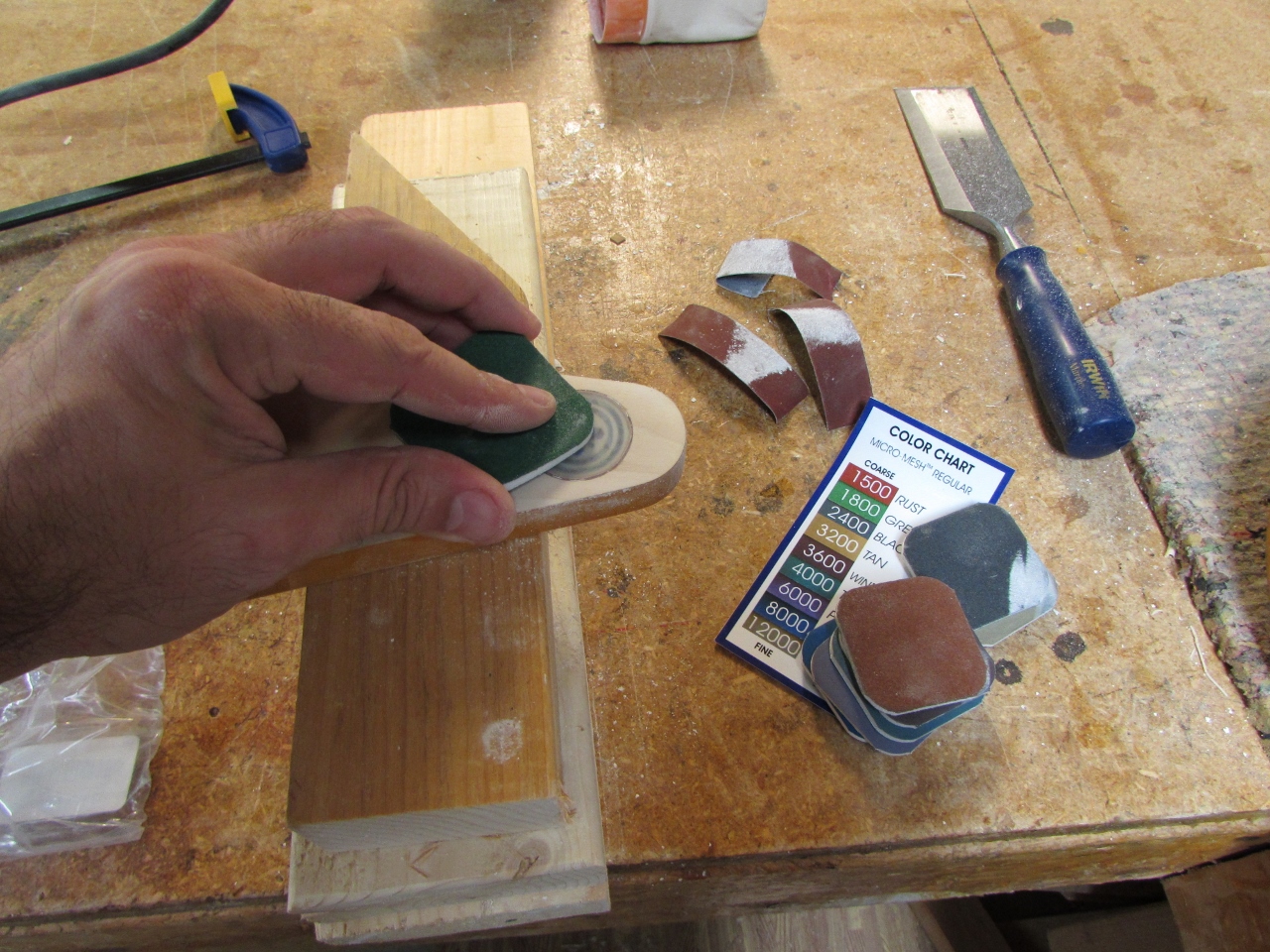 The epoxy looks cloudy now, because it is basically a piece of scratched up plastic. I have done a few of these and I usually sand the epoxy down to 600 grit and the finish looks great. I happen to have recently picked up a set of sanding pads for acrylic that go all the way down to 12,000 grit so I thought I would give them a shot. I sanded the rest of the headstock down to 320, but polished the epoxy all the way down to 12,000.