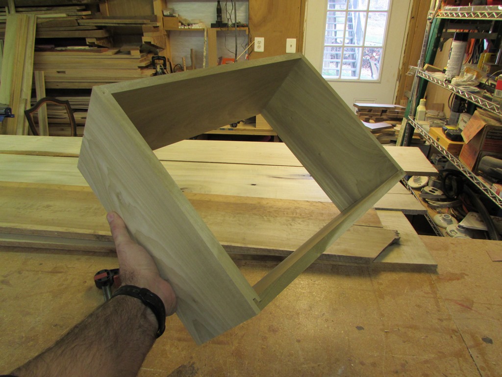 I briefly played with the idea of using a lock miter for the drawer corner joints. Mainly because I think they look cool. But, they work best with 3/4″ thick sides, and I really wanted to thin the sides out a little.