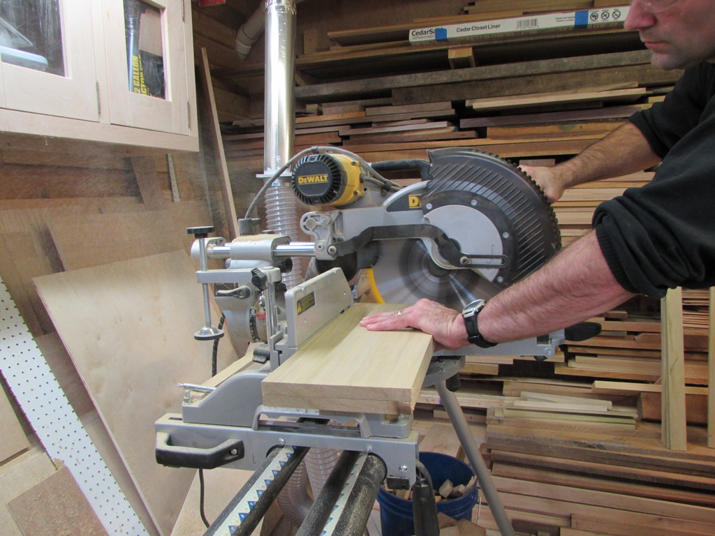 I marked the length of the end and the side and over-cut them by 1/8″ or so. Then I laid the two ends or sides together with the cut ends flush and cut them both to the exact same length together.