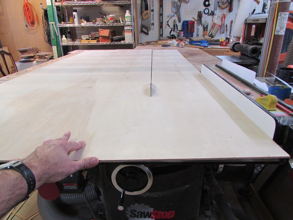 For the drawer bottom, I measured from inside the dados, with three sides of the drawer assembled, then subtracted about 1/16″ to give a little room for expansion. Remember, this is a bathroom vanity, there will be moisture in the air. All wood expands when moisture gets to it, even plywood. This is also why I will be making drawer faces that will mount to the front of these drawers. If I made them inset so they were flush with the face frame, I would have to leave a good size gap to prevent expansion from binding the drawer shut. So while the raised panel faces are more work, they do have a practical reason for being used, and I think they look better anyway…