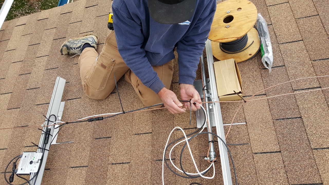 Once the optimizers were all installed, Don hooked them all together and ran the wires back to the solar deck.