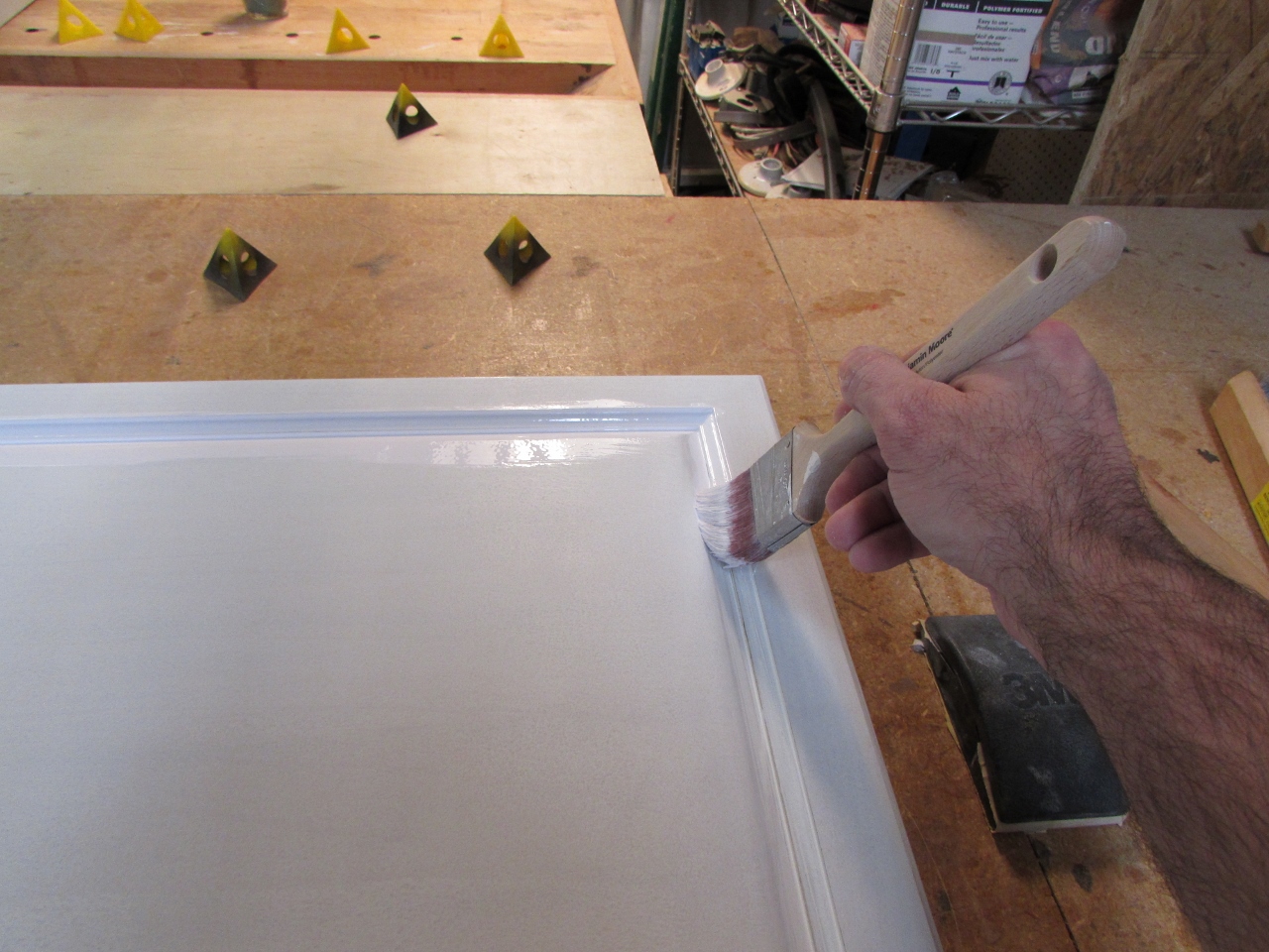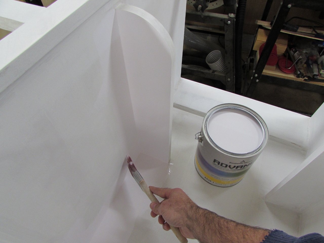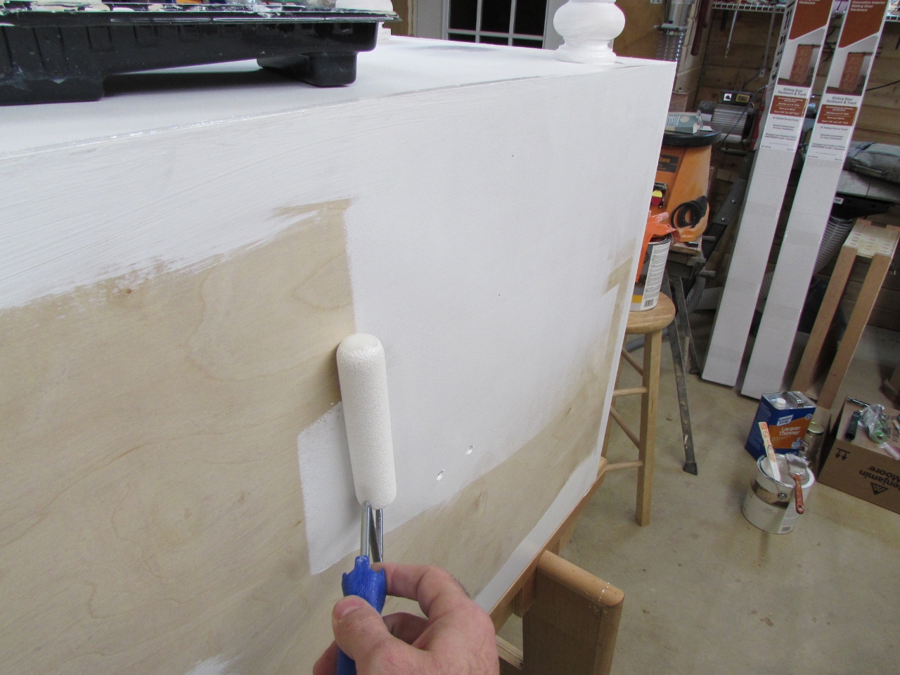 I decided that I didn’t really have enough room to set up a spray booth, so it was back to the brush and roller. I was assured, by the salesman, that the paint would level out even though it was brushed on. I didn’t want obvious brush strokes to be visible.