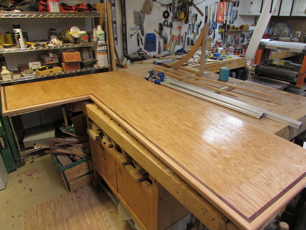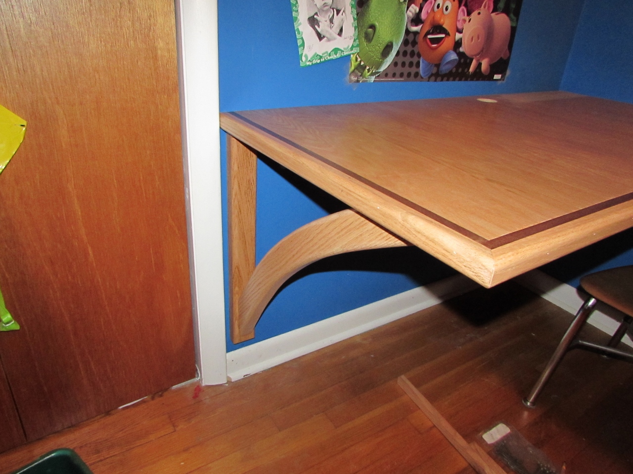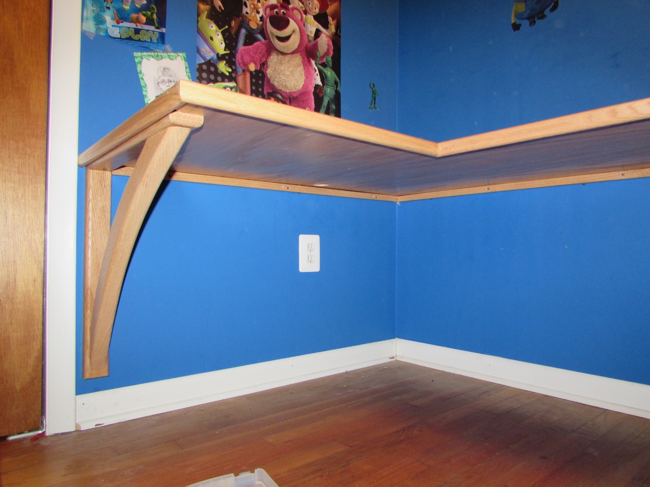I had Adam do a little testing for me. It appears the corbel works well, Adam can spin around without banging his knees. He also load tested the center of the desk. It barely deflected, so it looks like I am done until I start on the overhead shelves and cabinets.