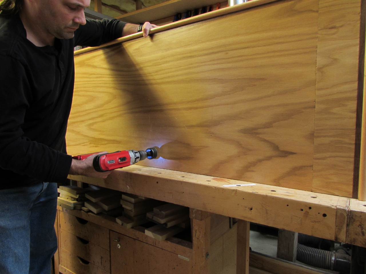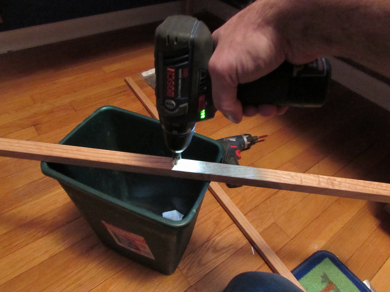 I cut a stick to support the back side of the desk while I got the support strips cut down and counter-sunk.