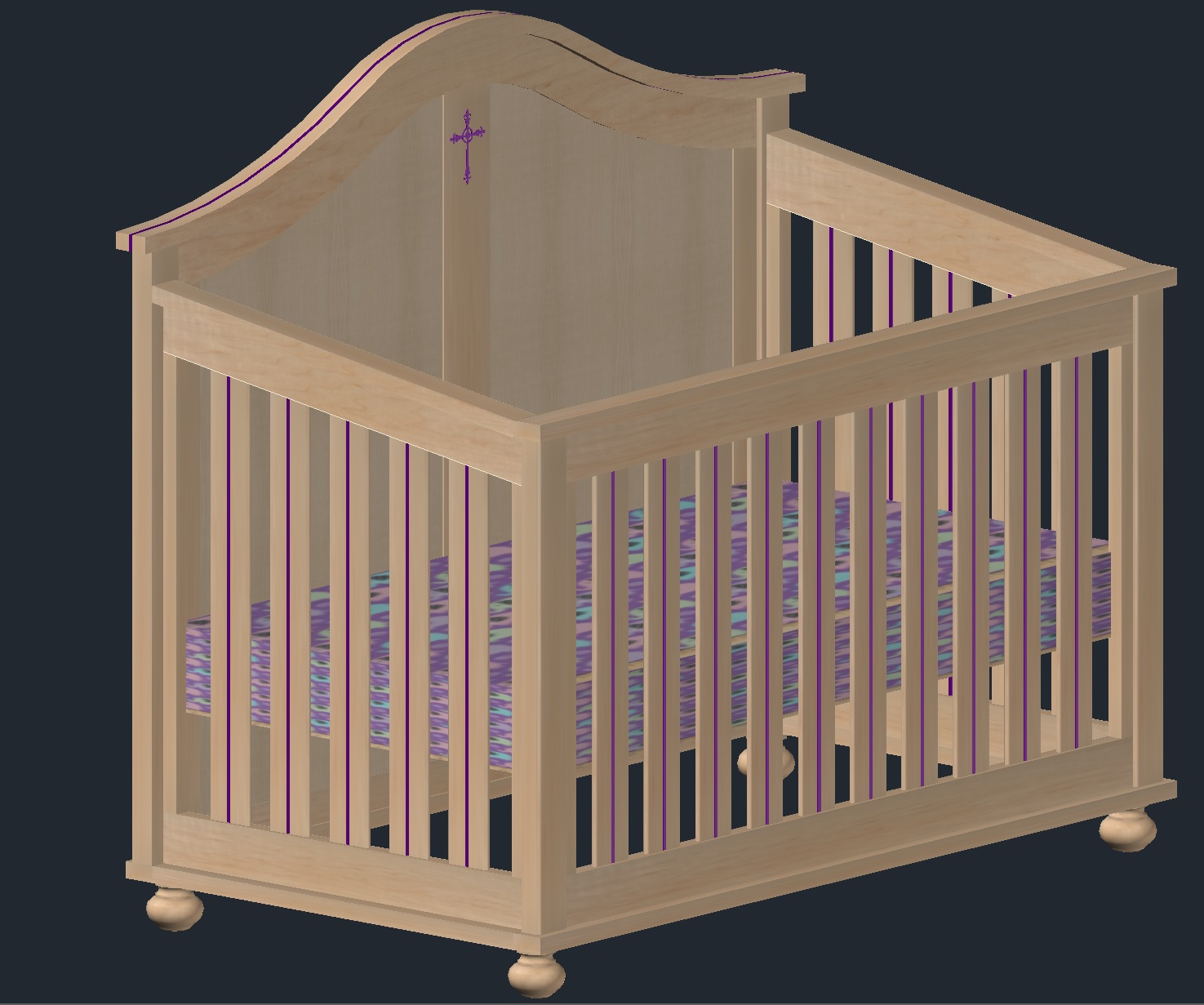 My friends are having a baby in a couple of weeks, and they asked me to build them a crib. They sent me a picture of a crib that they liked, and I came up with a design that was close, but unique. We picked maple for the main body of the crib, and purpleheart as an accent. It took a while for me to come up with a design, I am still working out some of the details, but I am ready to get started. This is the 3d model of what I am planning on building.