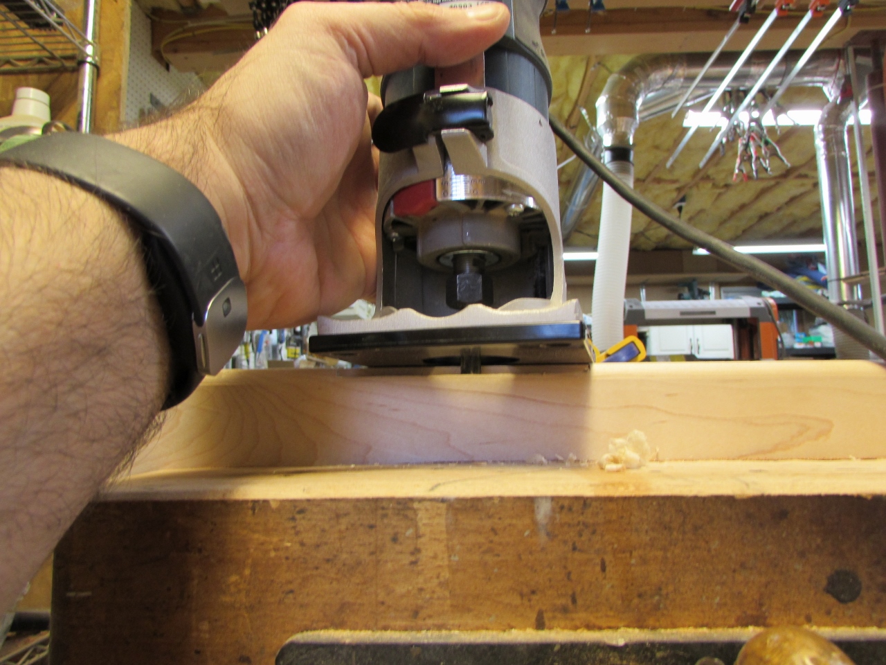 Then I added a 1/4″ radius to each remaining corner, on the router table.