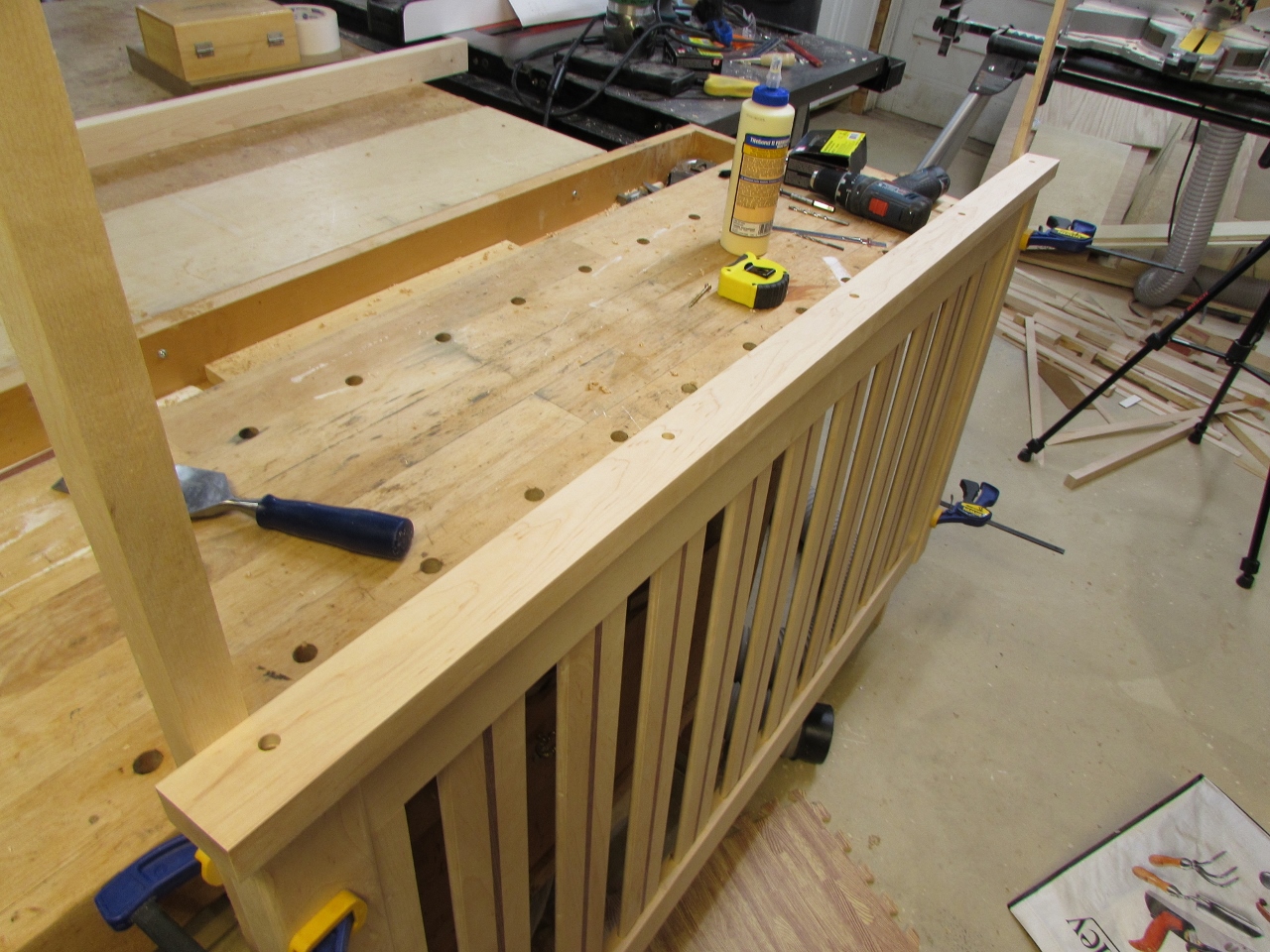 In a few short months, a very tiny set of hands are going to be grabbing at these rails. I carefully sanded each and every piece breaking every sharp edge and smoothing every rough spot. I tested each piece by closing my eyes and running my fingers over every surface and edge. I don’t know why, but it works better with your eyes closed, and if I get surprised by a splinter, then I didn’t do it right…