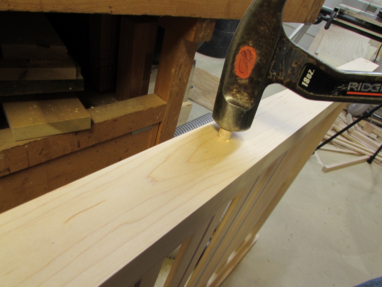 I used a thin stick to apply glue to the sides of the holes, then drove all the plugs firmly in with my hammer.