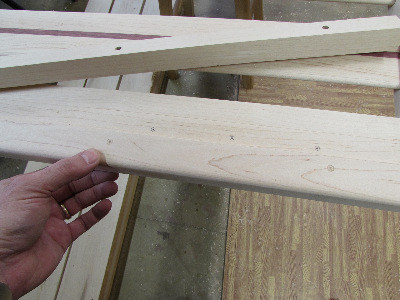 Before marking the bolt locations, I wanted to experiment with installing the threaded inserts. The hardware came with no instructions, and I know inserts can split wood if the hole is too small, so it is always better to experiment. These inserts have a hex hole in the top to make installing a lot easier than the slotted types, that I have had to use in the past. I drilled a couple of holes, to find a good size for the insert.