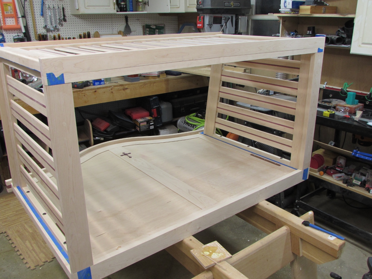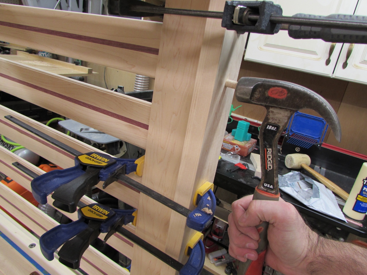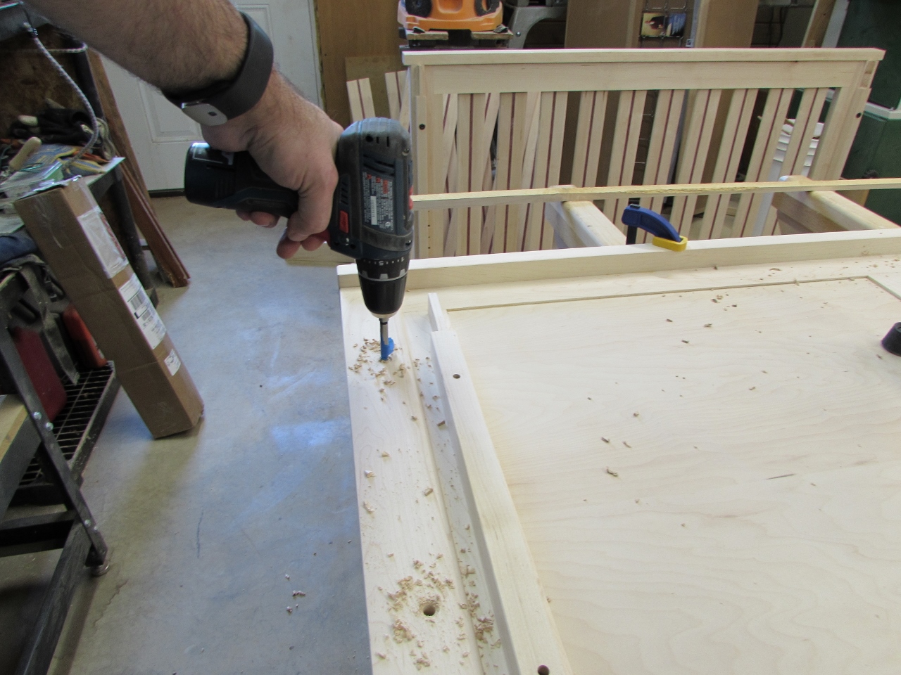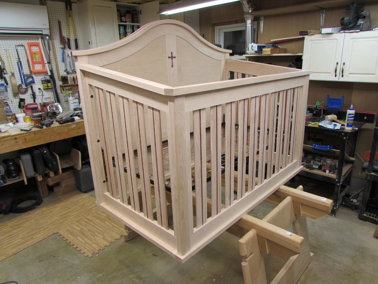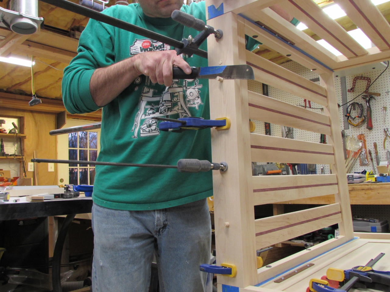 I set up my knock-down workstation, then assembled the sides and clamped the whole crib together.