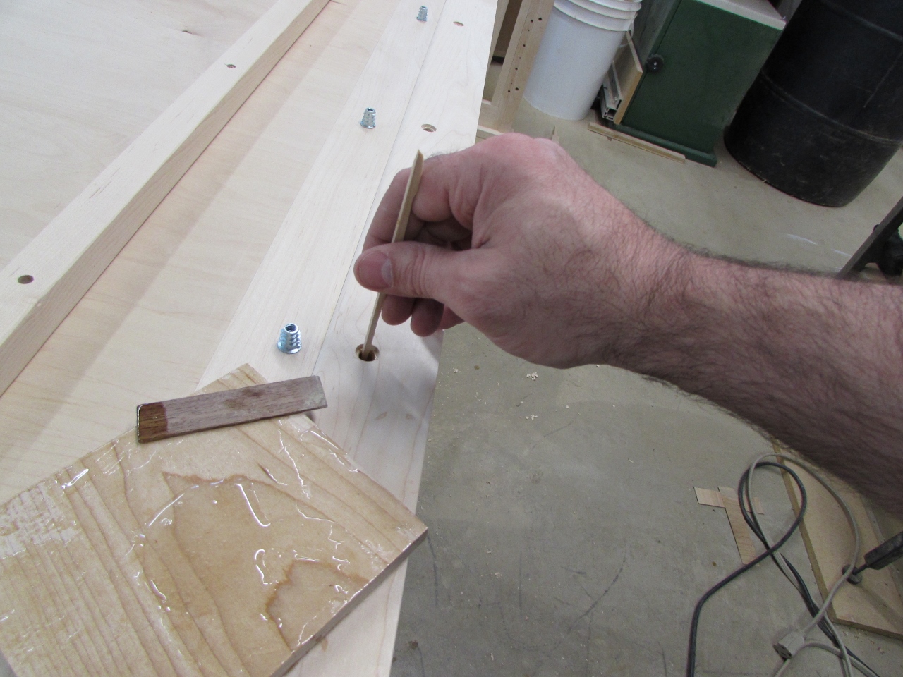 After the holes were drilled, I cut a handful of new plugs and glued them in place.