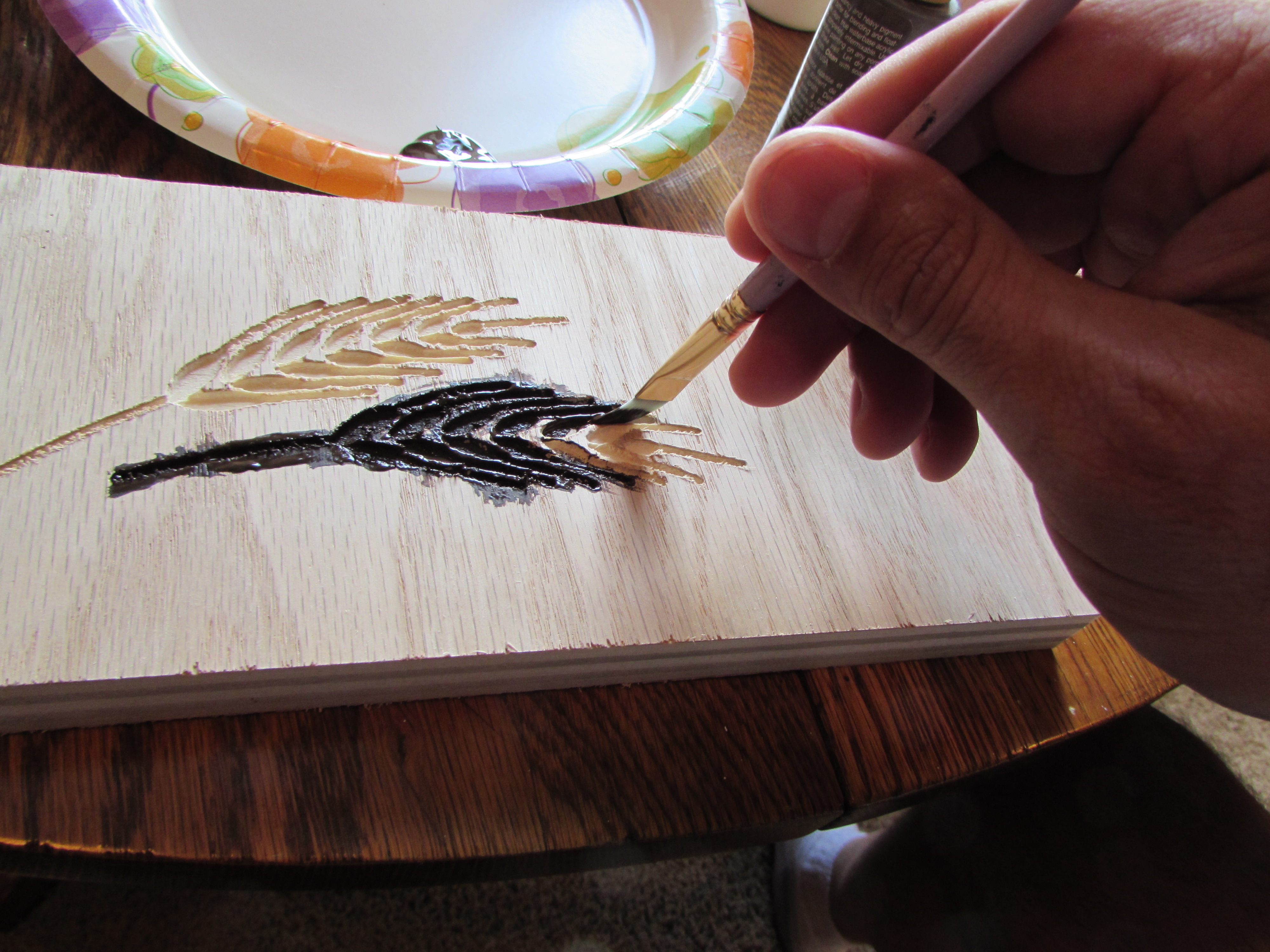 I painted each piece of wheat with acrylic paint. One black, and one brown.