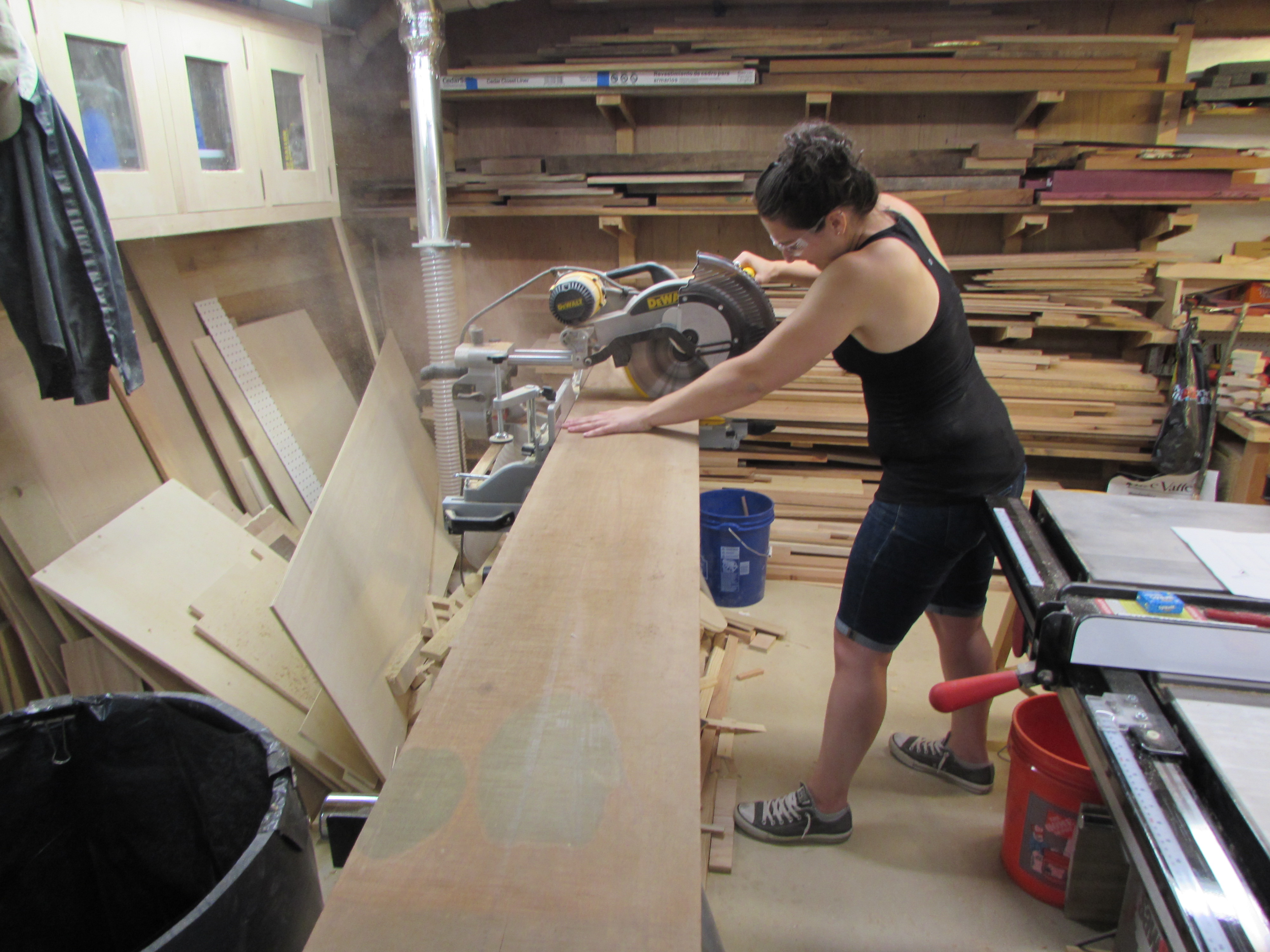 We set that panel aside to use later and grabbed a large piece of walnut to cut and plane down to become the new mantle.