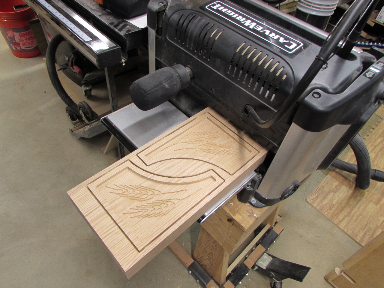 When that carve was complete, I loaded the second board and carved just the outline of the corbels, then set the two carved blocks aside for Erin to work on later.