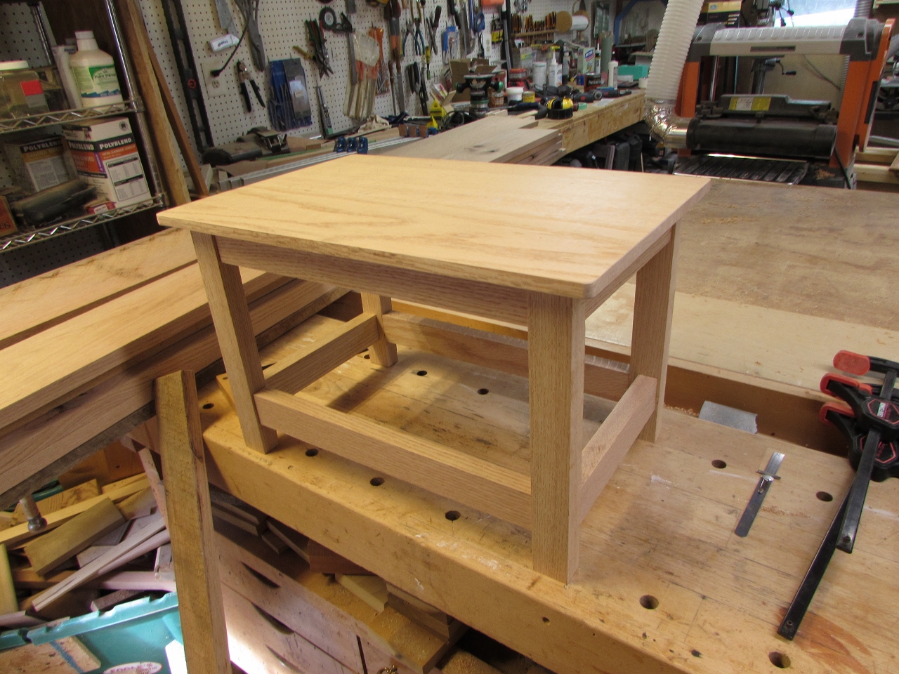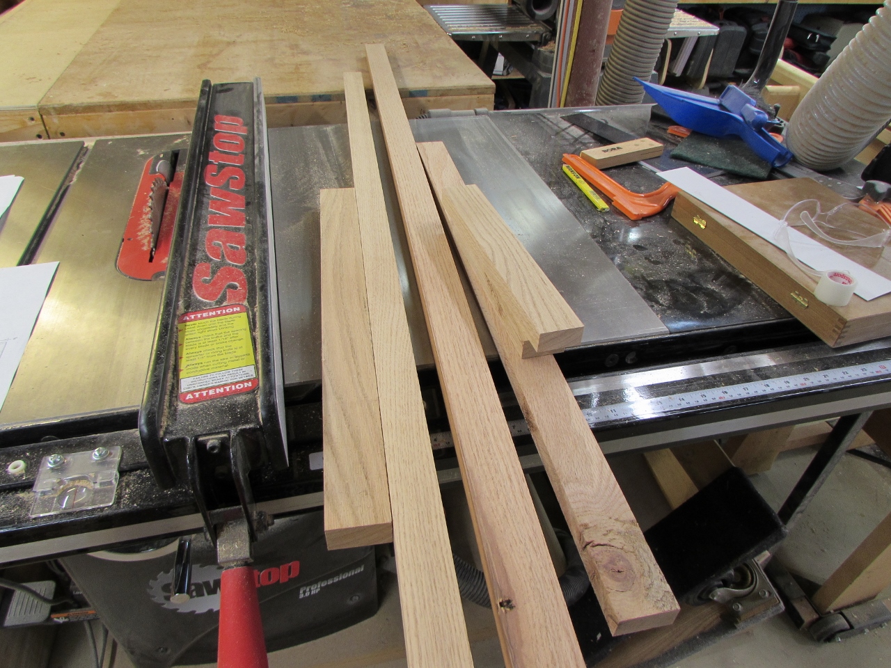 Since the whole thing is only 12″ tall, the legs don’t have to be too massive. I used some 1″ thick oak for the legs and some 7/8″ thick pieces for the cross bars.