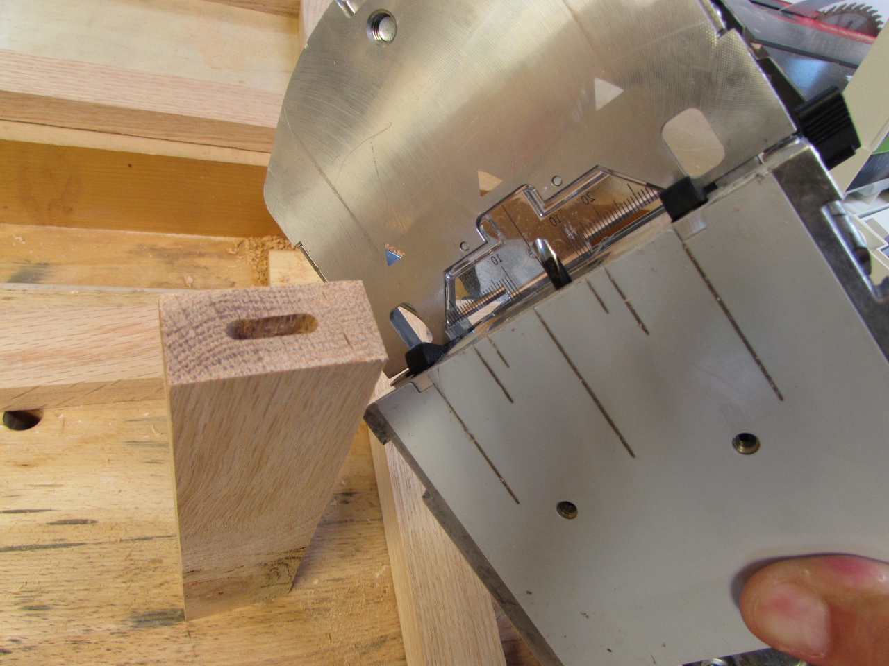 Then I install a piece of wood, that looks a bit like a domino, to create a tenon.
