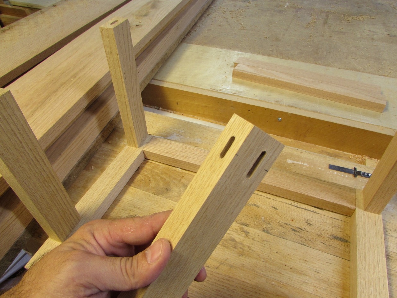 After cutting out all the mortises, I did a dry-fit, then glued everything up.