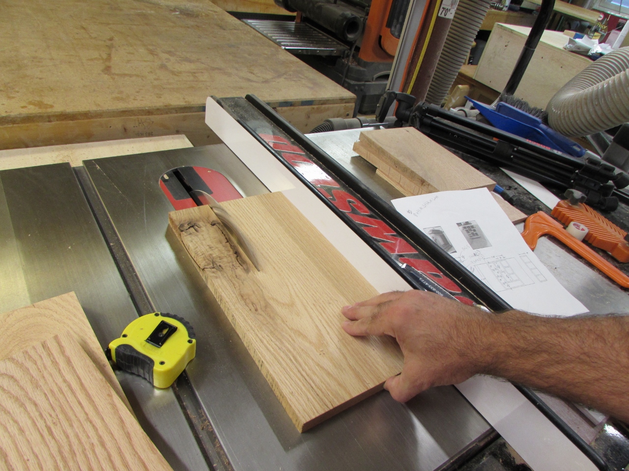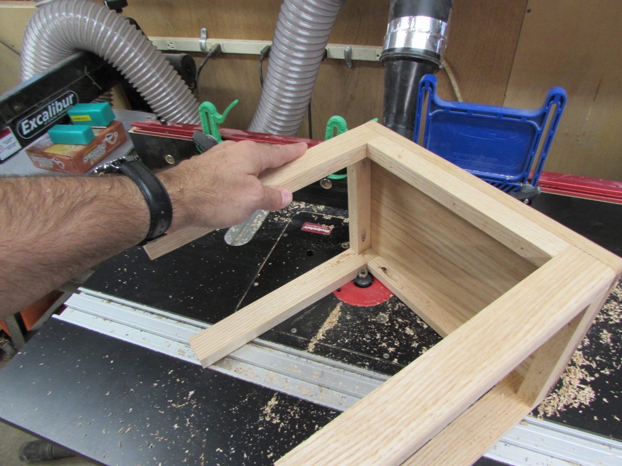 I start by cutting all the sides down to size, for the tabernacle, then I round over the edges on the top and bottom pieces.