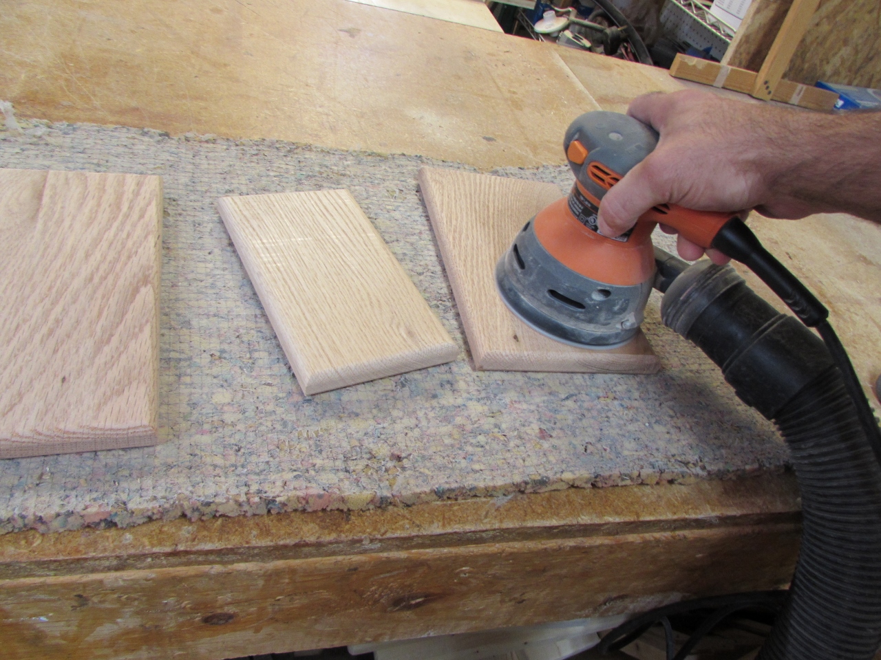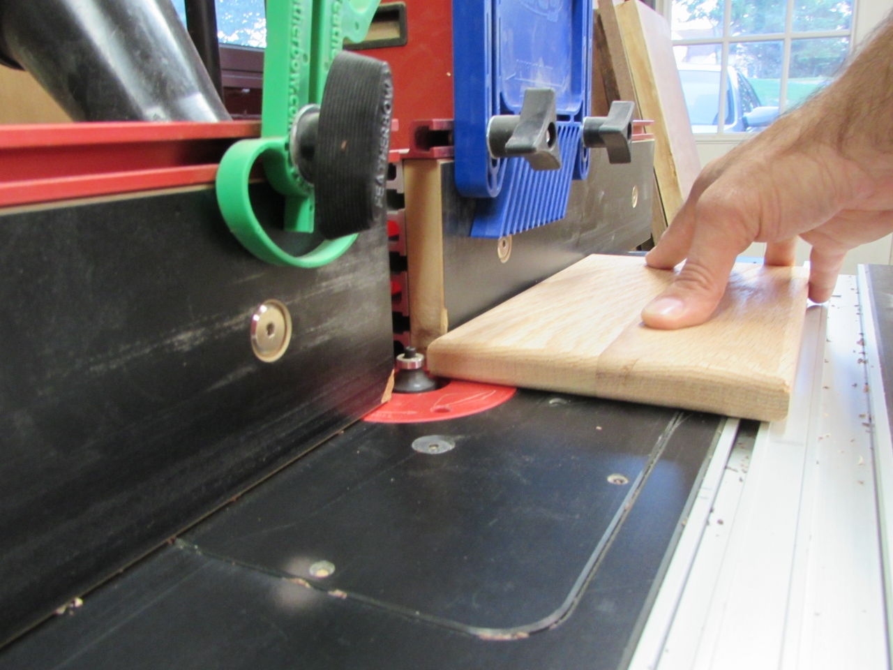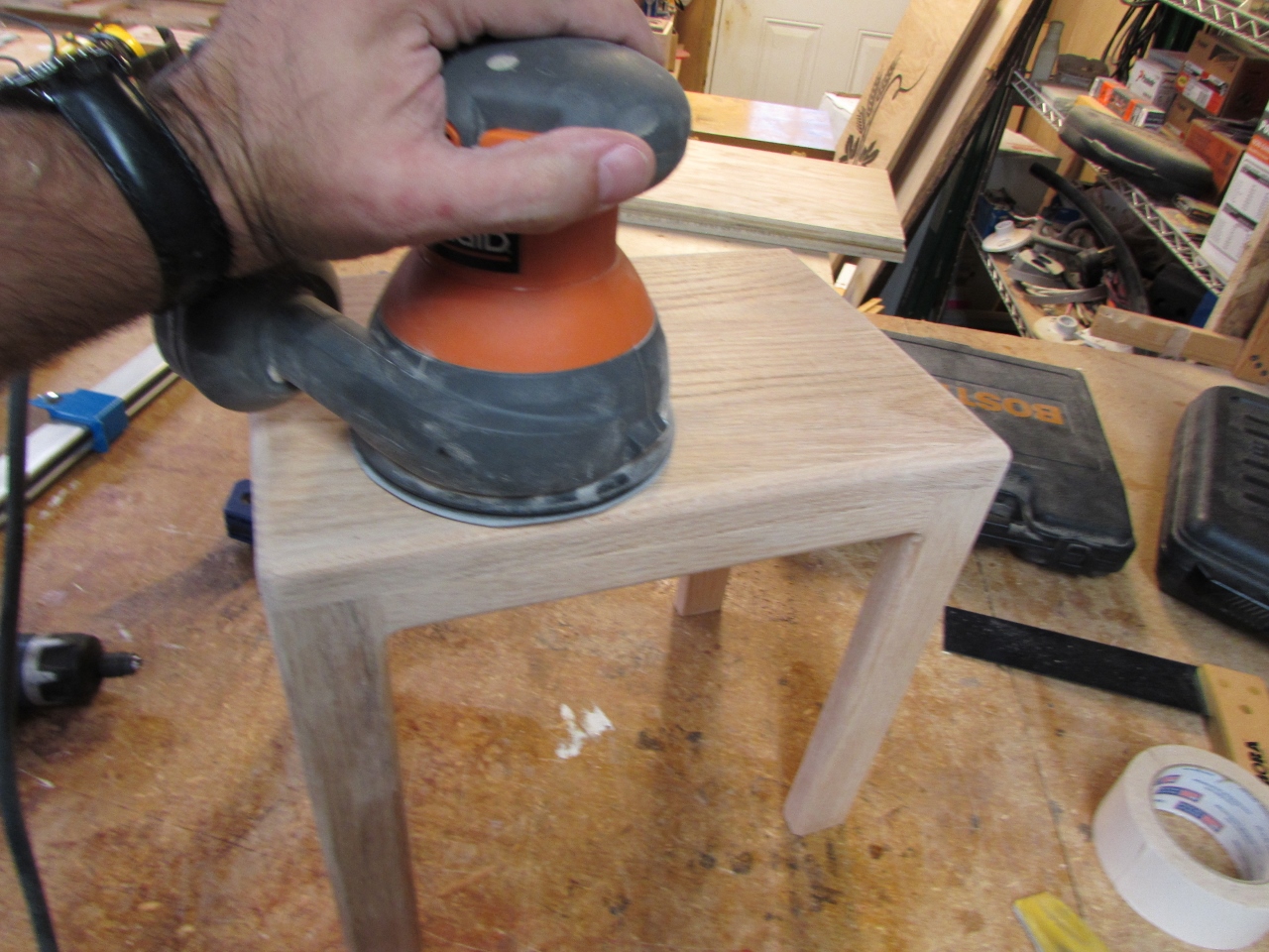 Since the table was so small, I ran it across the 1/4″ round-over bit on my router table to take all the sharp edges away. Then I gave the stand a quick once-over with the orbital sander.