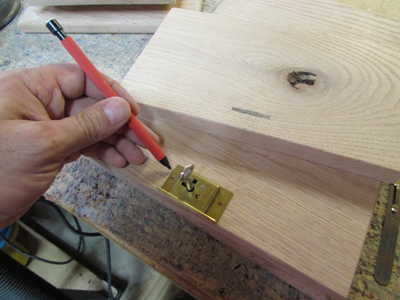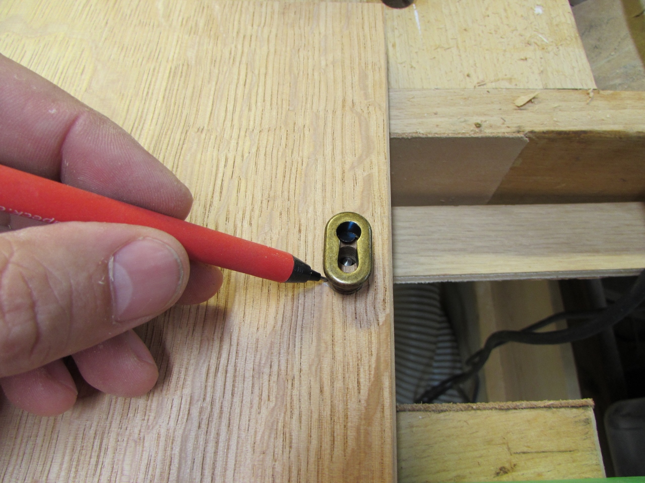 Next step was to center the lock on the door, then locate where the latch hit the side panel.