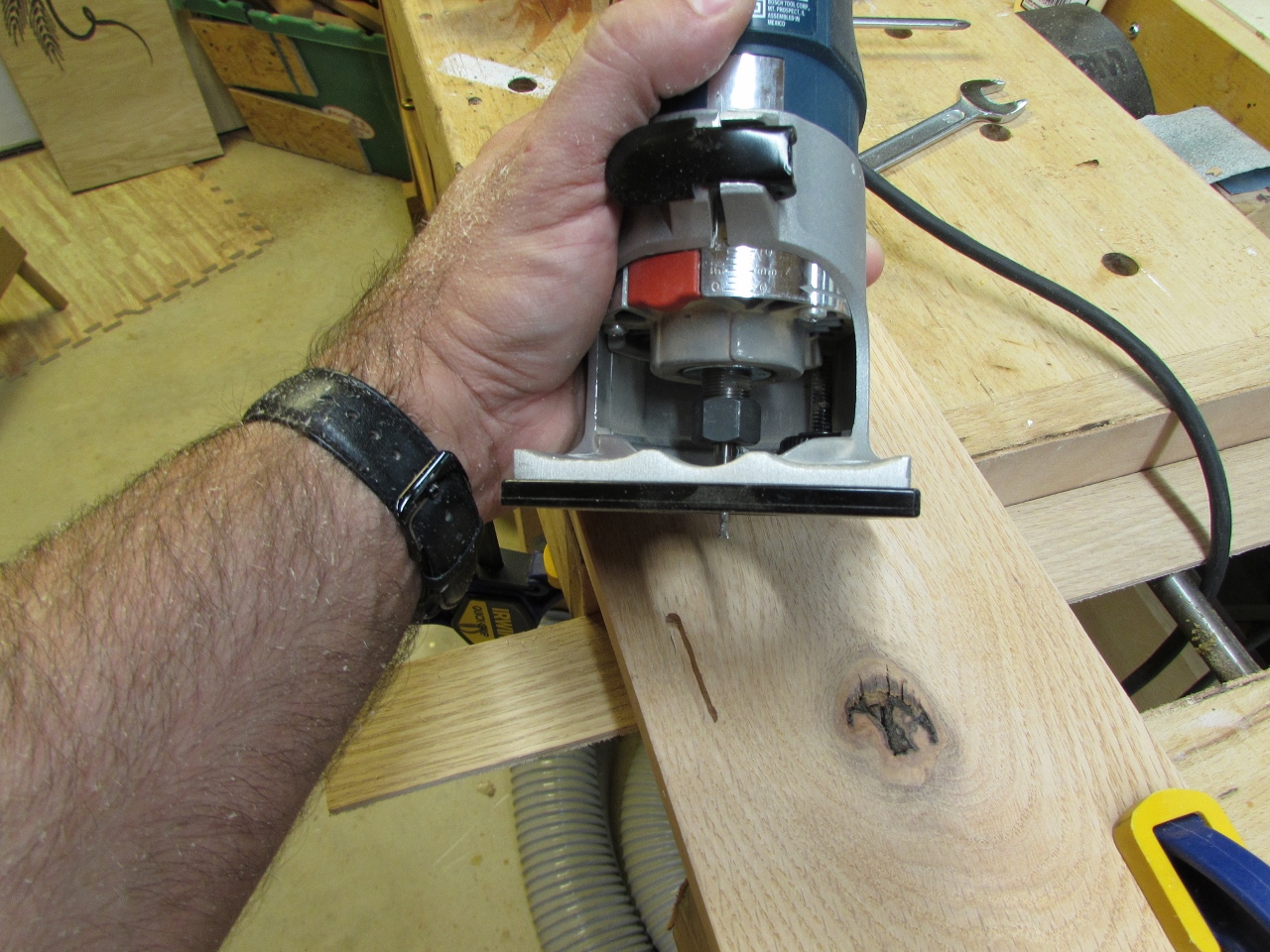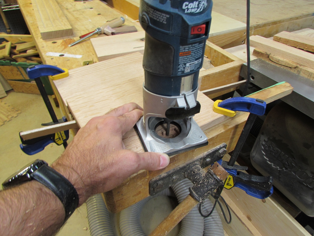 I used my trim router, with a 1/4″ spiral bit, to rout the main pocket. Then I used chisels to remove the shallower areas.