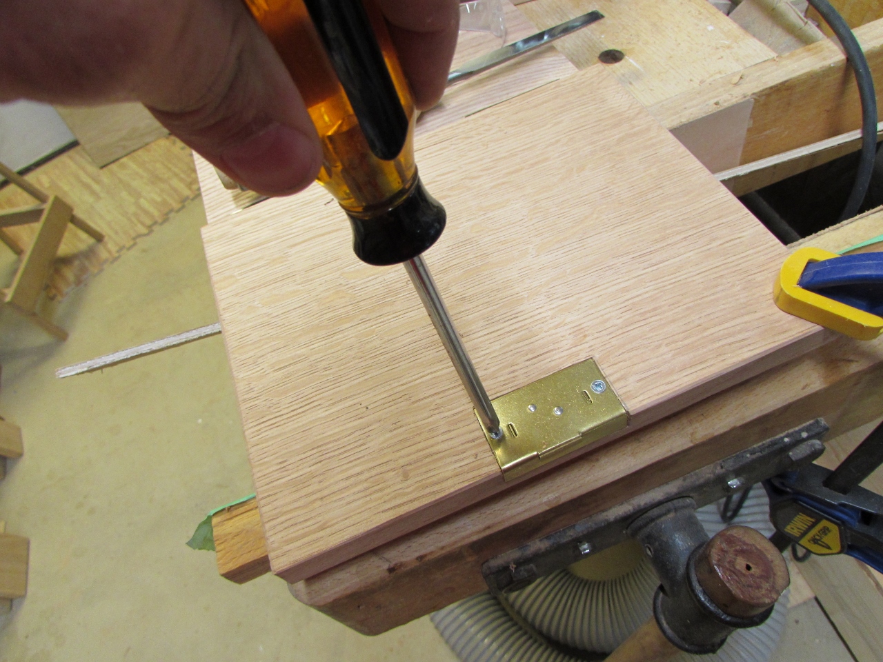 I threw away the brass screws that came with the hinges because they break so easily when they are screwed into hardwood. I used some steel screws instead and had a lot better luck.