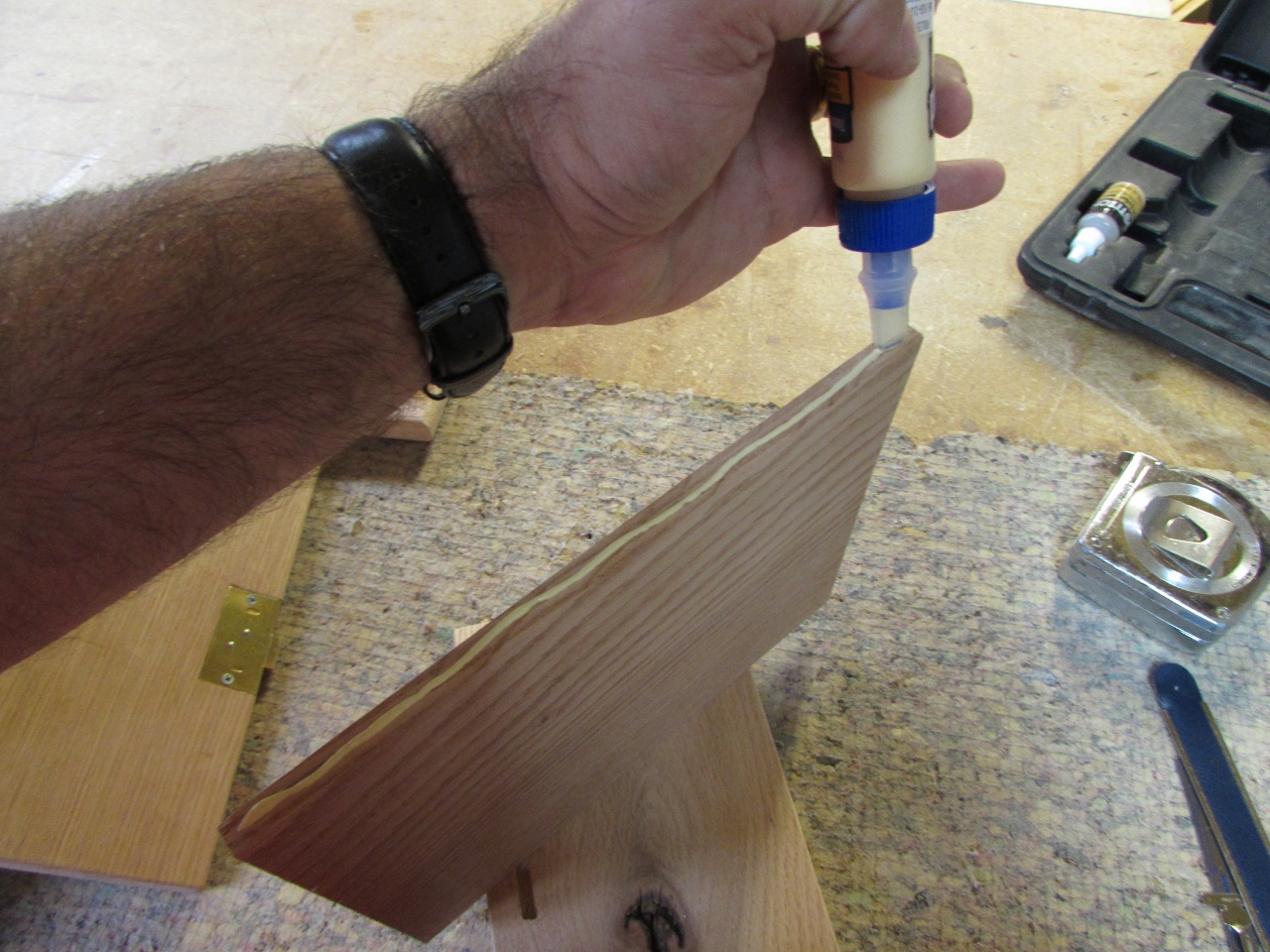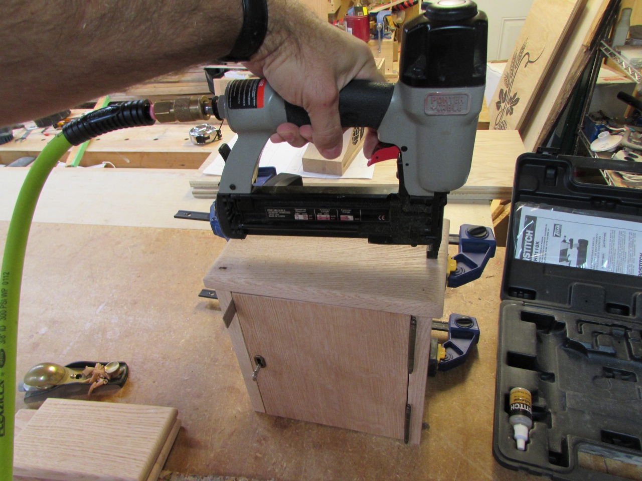 I applied a bit of glue to the top, then nailed the top panel in place, from the bottom.