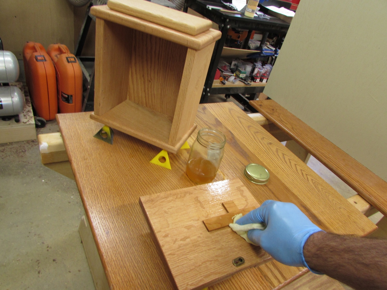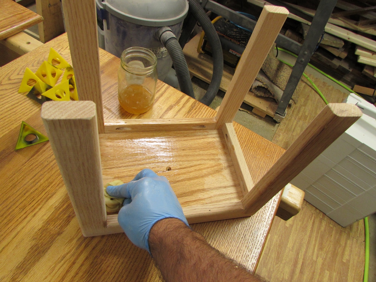 With the table done, I went back to the wiping poly… It dries fairly quickly so I should have all three coats done by tomorrow.