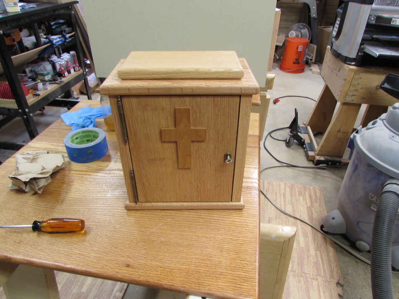 Almost forgot the cross. I glued it in place and the box was done and ready for finish.