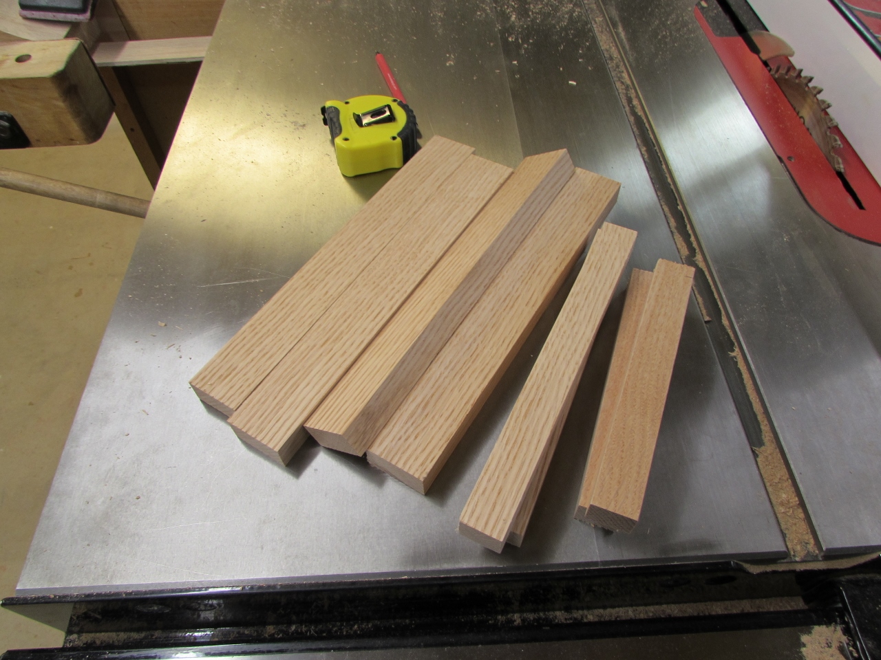 Since it is only 12″ tall, I raided my off-cut pile and cut down the pieces for the legs and apron.