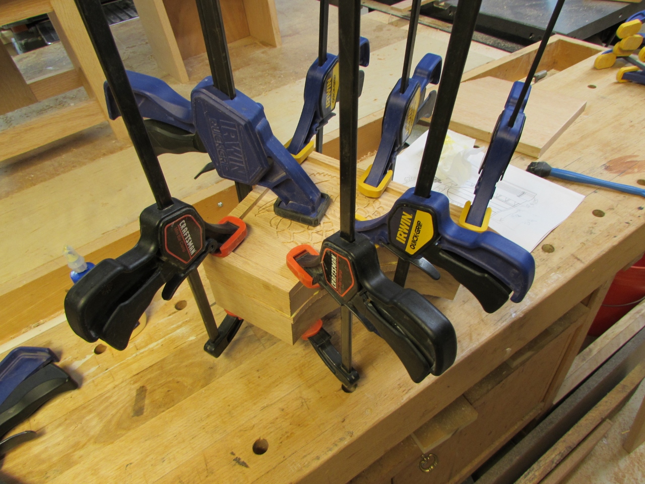 I glued up the three pieces, and clamped them up.