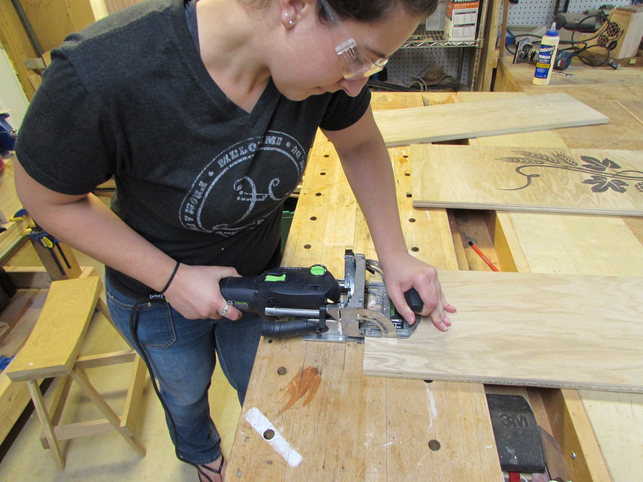 I showed Erin how it worked and let her cut all the mortises, three on each side.
