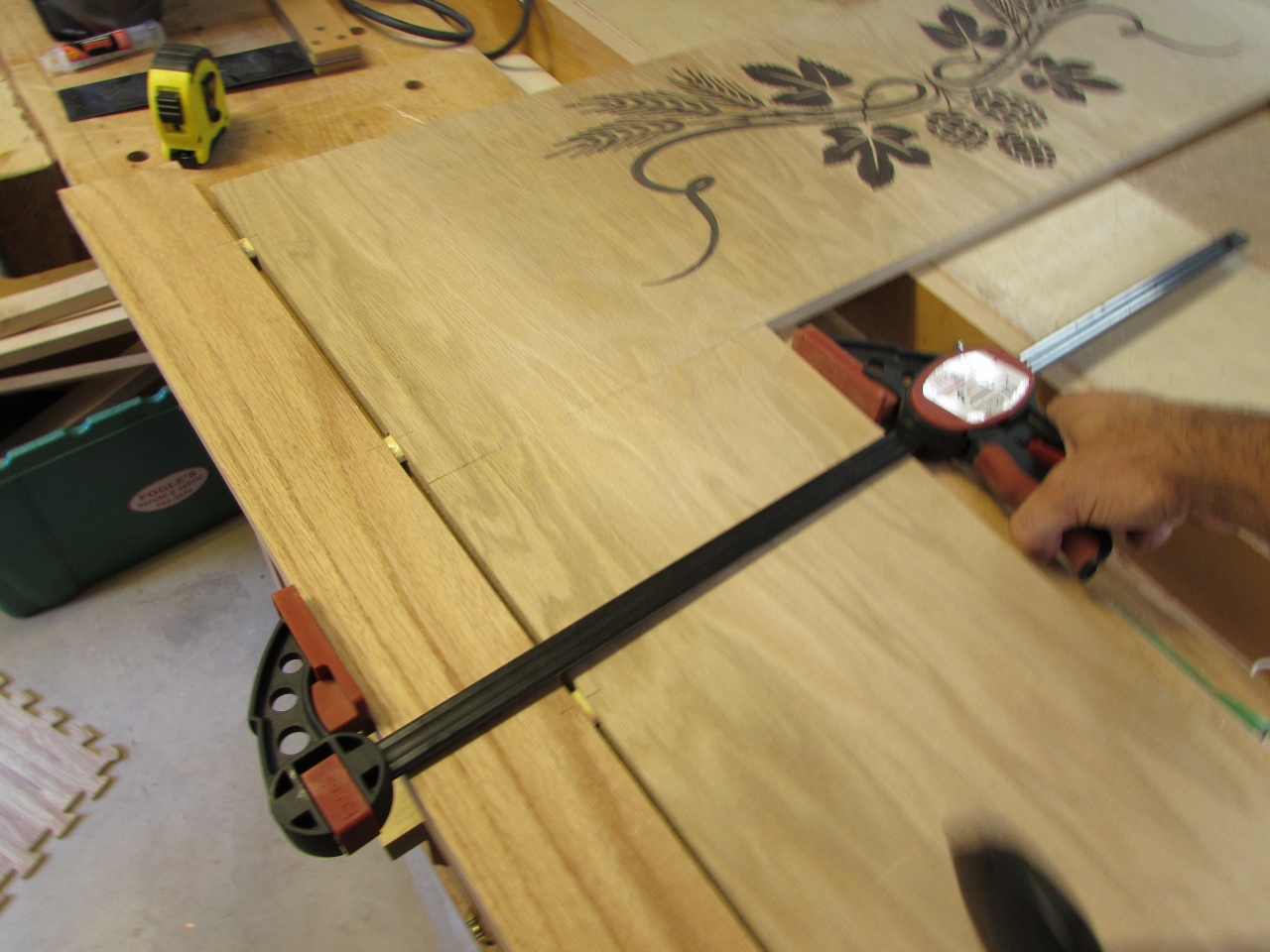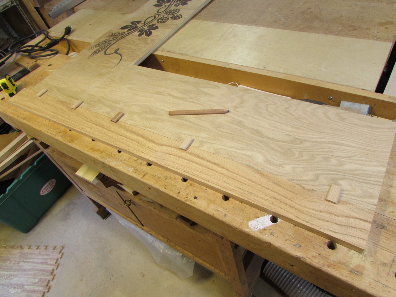 While that was running, I cut two 3″ wide pieces of solid oak to attach to the sides of the plywood. This will cover the plywood edges, as well as widen the face.