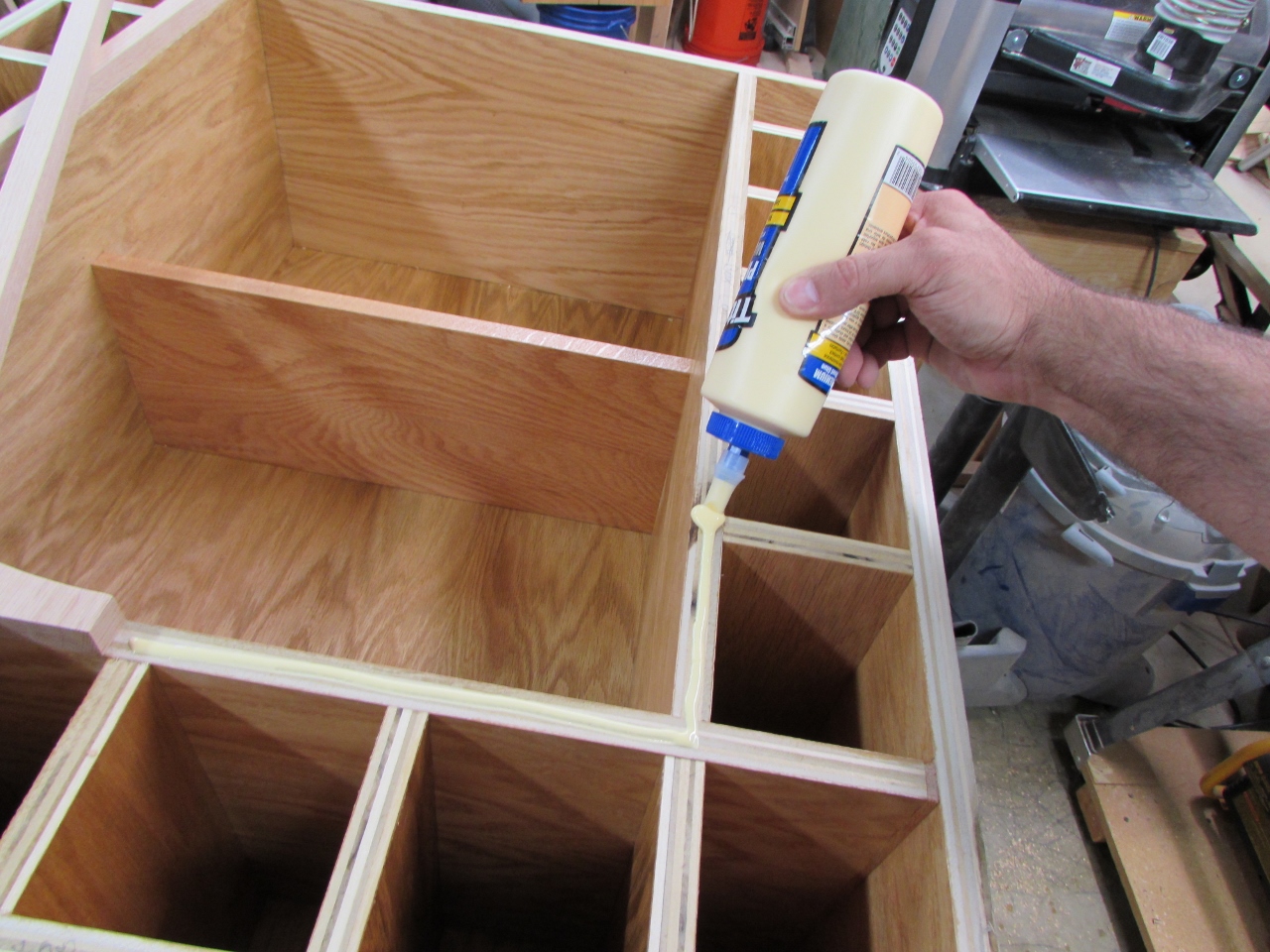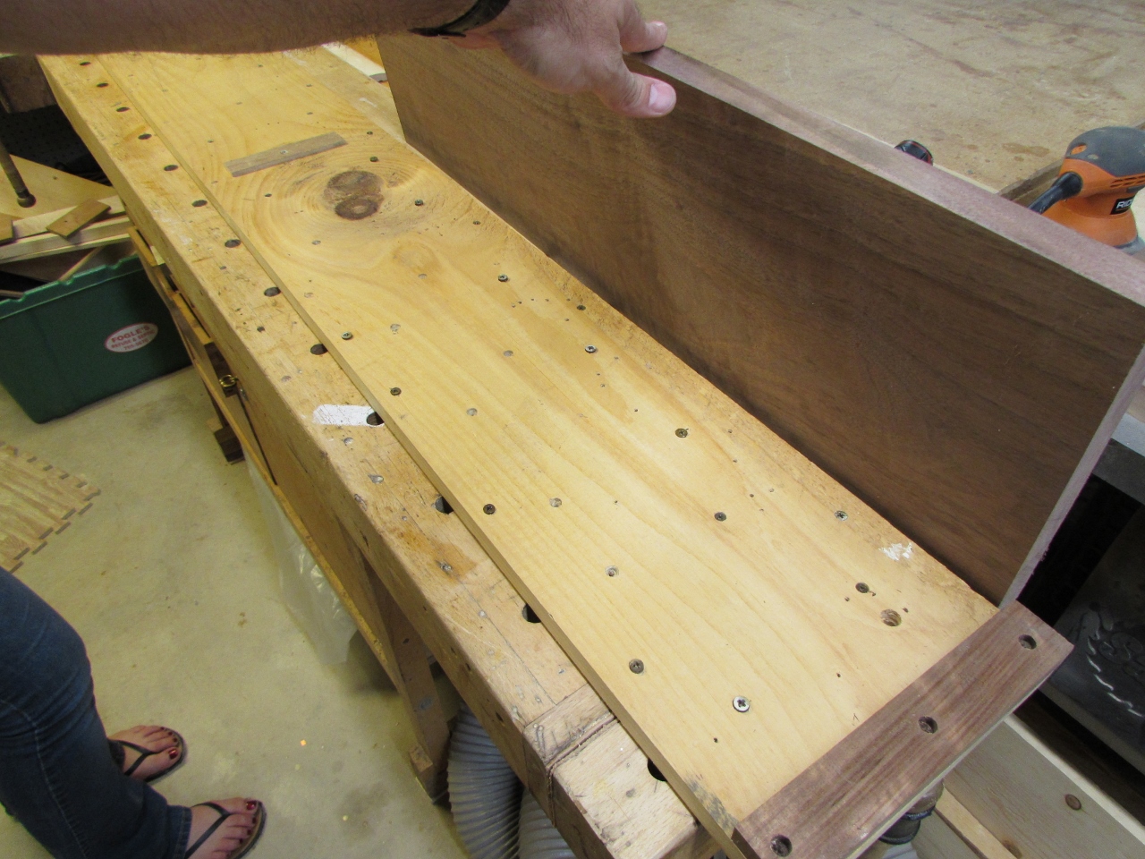 I had Diana install the flanges to the sides of the cabinet, with some pocket hole screws, then I could set all of the other parts up against the cabinet. The flanges will allow me to attach to the face, from the rear.