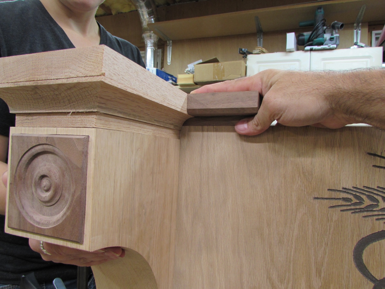 She cut and planed a piece down to 1/2″ thick for the first of the three cap pieces.