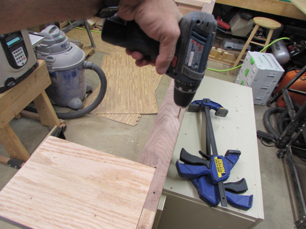 Once it was all assembled, we clamped every available surface to get a good, tight fit. The nails were mainly to prevent anything from slipping when it was all clamped up.