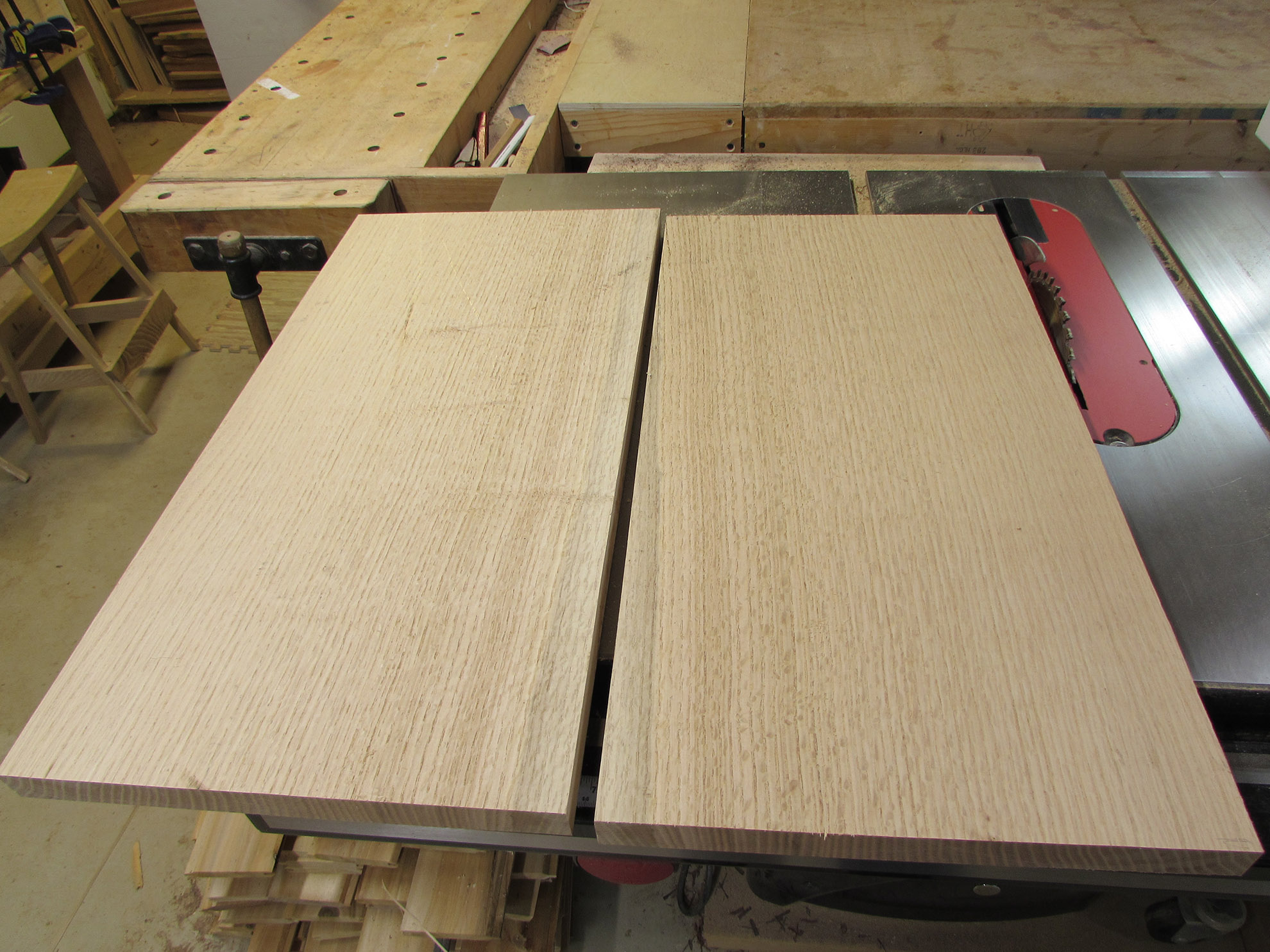 I got a little prep work done before Erin came over today. I will require some thicker oak for the supports, so I cut some quarter-sawn red oak boards.