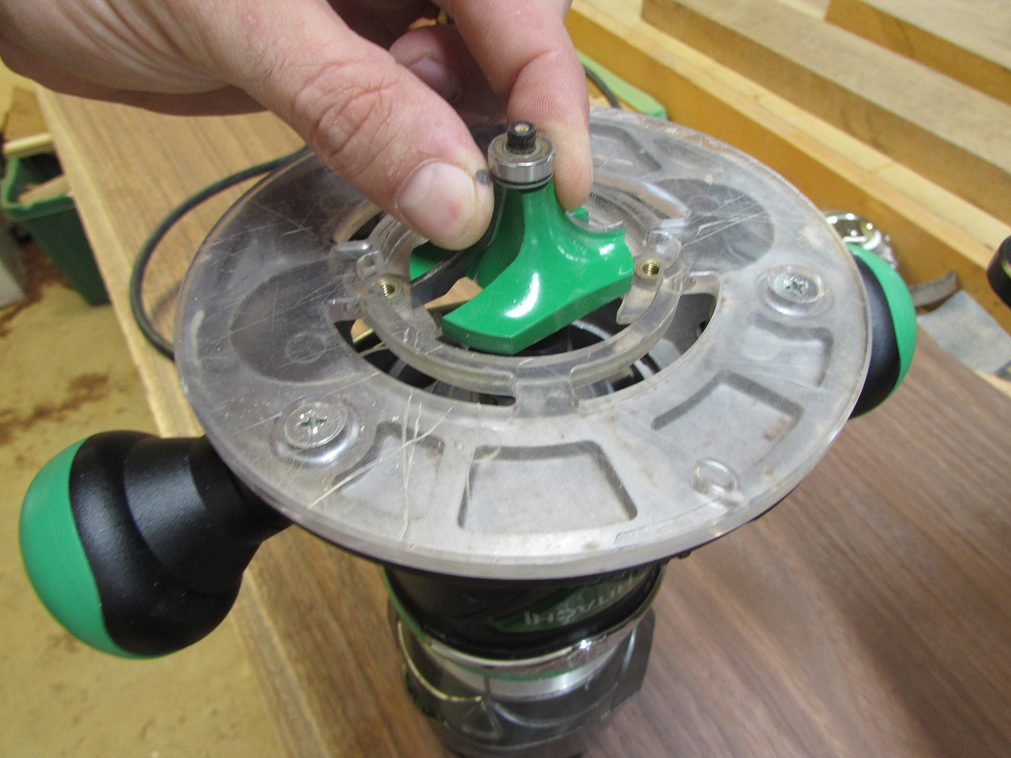 While she was sanding the edges smooth, I tried to find a router that could hold my 3/4″ round-over bit. It was harder than I expected.