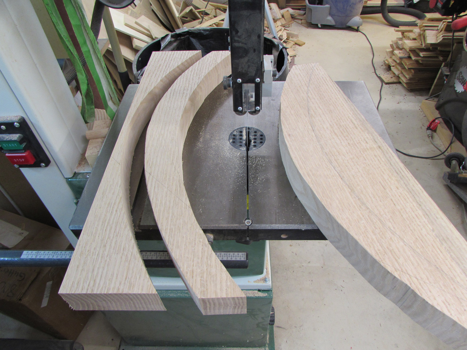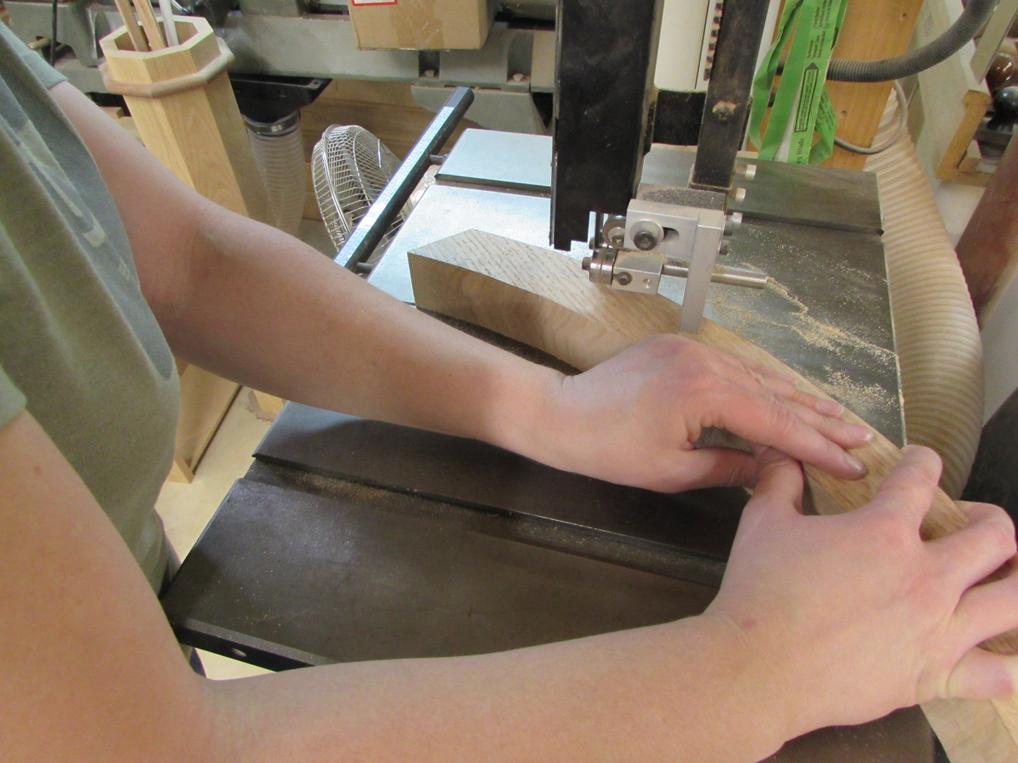 These supports are about 2″ thick and 2-1/2″ deep. Erin cut them roughly out on the band saw.