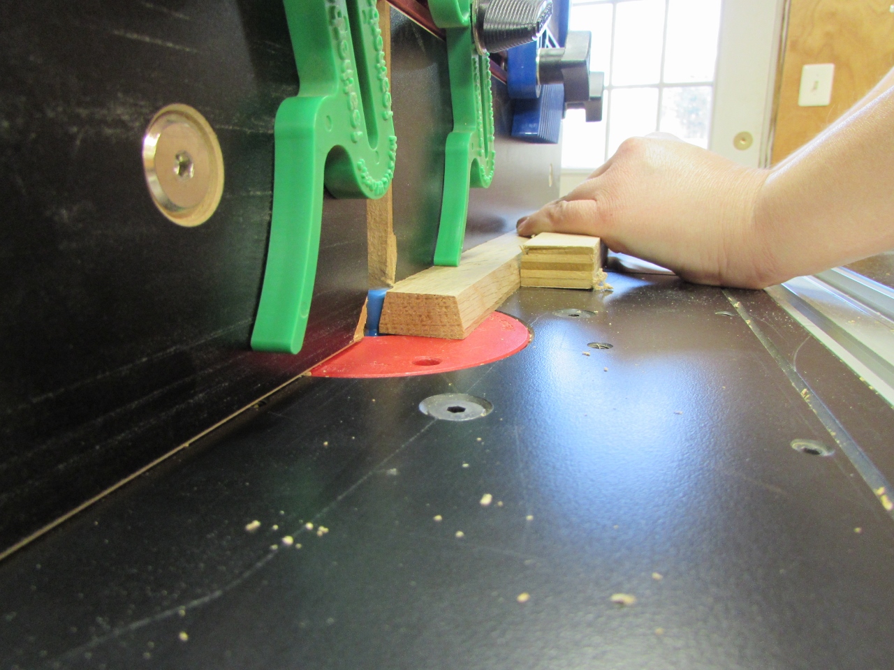 That created the channel. To create the dovetail piece, that will be bolted to the wall, we cut a piece that was just slightly narrower than the widest point on the channel, then cut the dovetail down each side.