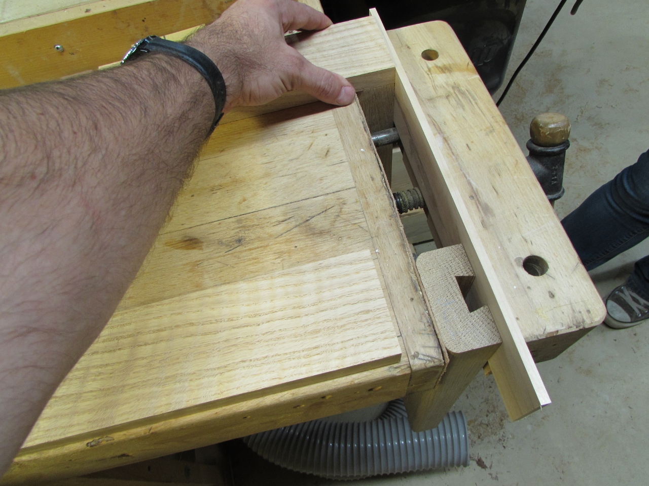 I set both back pieces up in a vise with a backer piece so we had a hard edge to square the top pieces up to.
