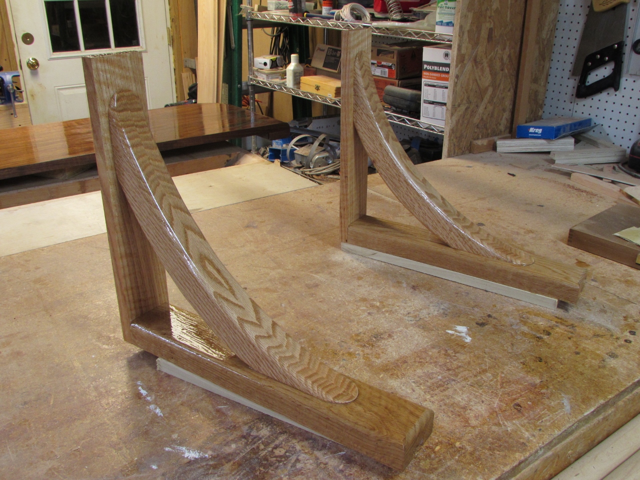 I think it adds a bit of a glow to the wood, Erin thinks the wax just makes it slippery… Either way, it turned out really nice and the curve of the corbels is small enough that you don’t hit them with your knees when you swivel on or off your bar stool.