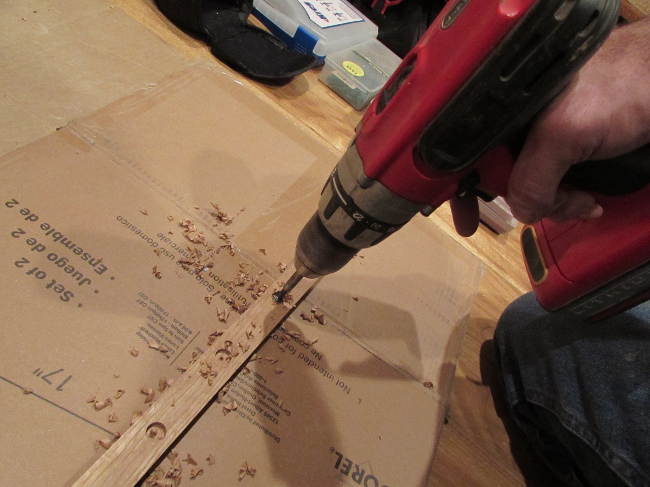 I drilled 1/2″ counter-bores into our dovetails, to receive the head of the screw, then drilled a 1/4″ through-hole in the center of that.