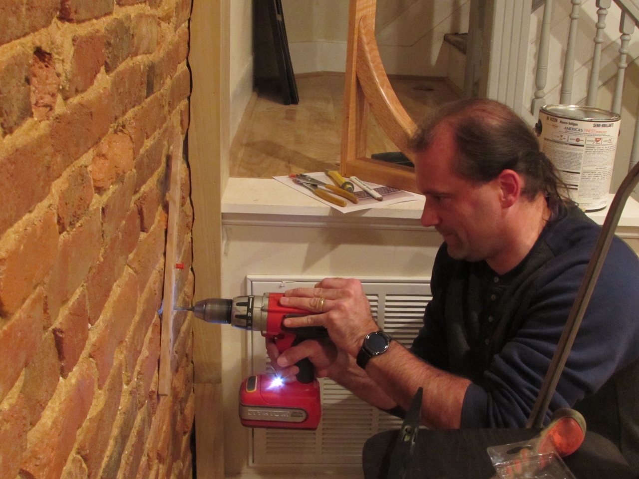 We hung the trim with some hammer set wall anchors that worked really well, but for mounting the dovetails, I wanted something removable, just in case there were any problems. The wall is not dead flat, and I anticipated the possible need to adjust looser or tighter, in order to keep the dovetail straight. For this, we are using some plastic wall anchors that were made for masonry.