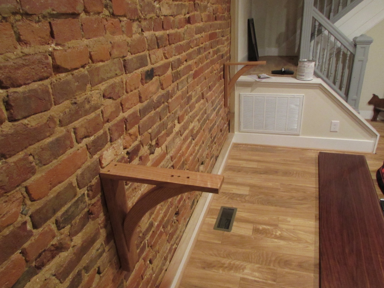 Five more screws later, and the second corbel was installed. We set the counter top in place and did a little load testing until we were satisfied that it would hold up whatever would generally be set onto a table or counter.