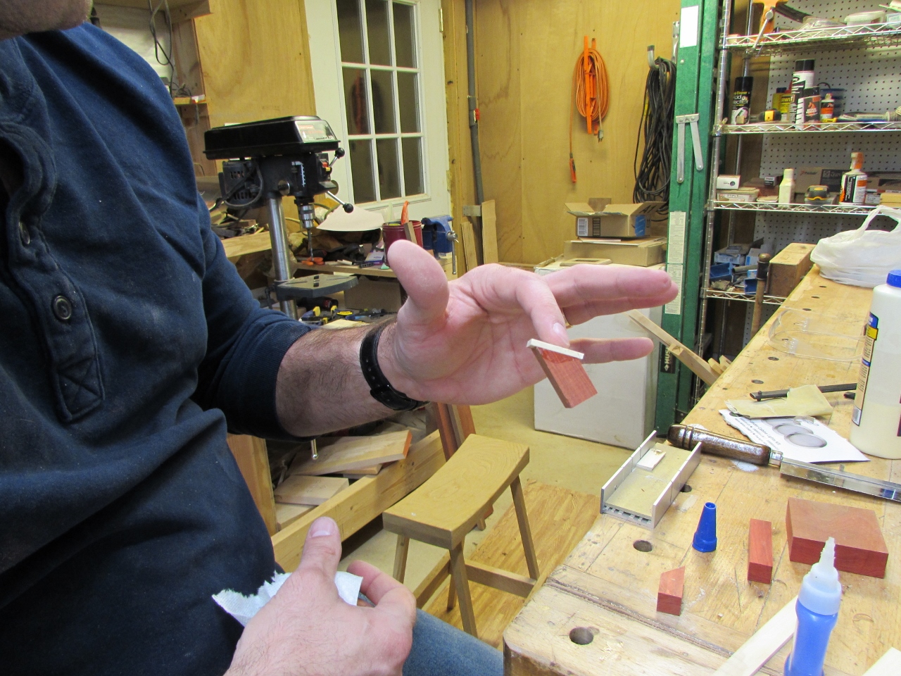 The redheart was an interesting wood to work with. It wasn’t as hard and splintery as most of the exotics that I have worked with. The shavings come off as almost a powder, Especially on my miter saw. It looks like it is covered in red baby powder. It was not particularly difficult to work, pretty nice, in fact. I would definitely recommend wearing a dust mask or respirator though with all the fine red dust floating in the air.