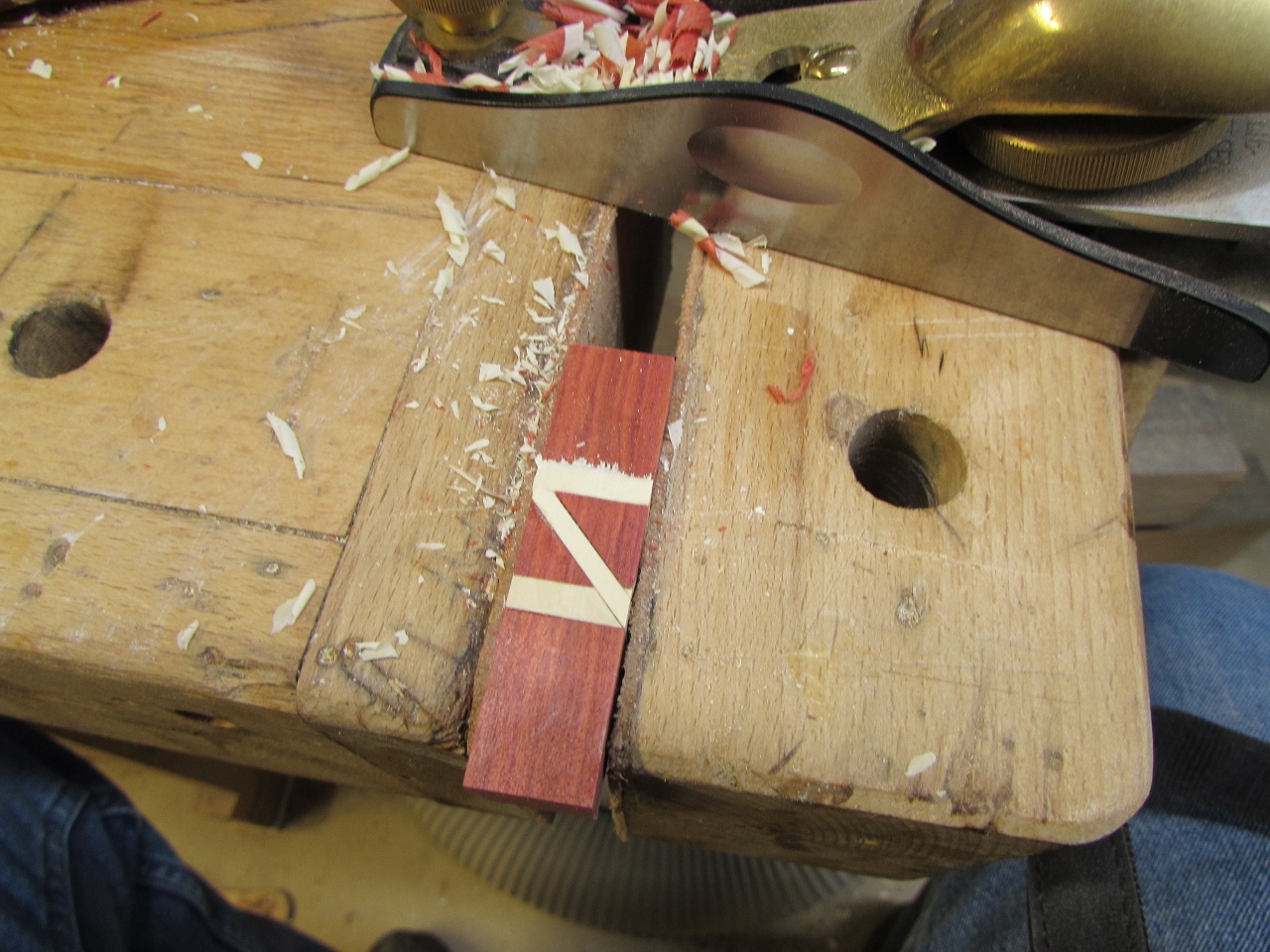 To continue, I need to remove the excess pieces of holly. I think the easiest way is to use my block plane.