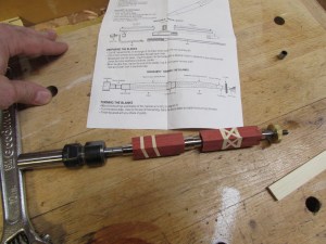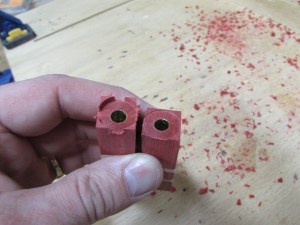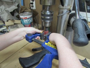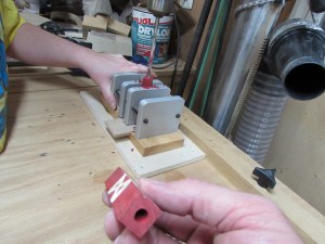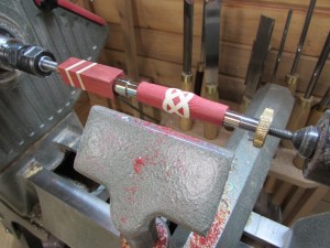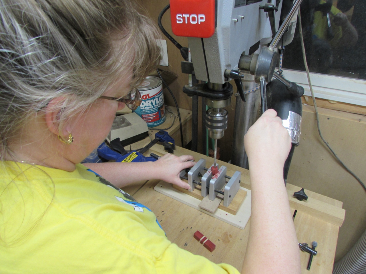 My wife, Tracie, set the blanks in the centering vice, and drilled out their centers.