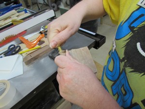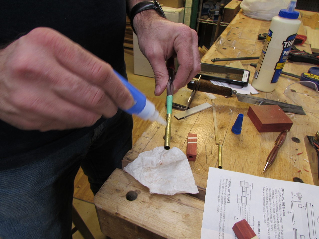 Next she roughed up the pen tubes that will line the holes in the blanks and I applied some more CA glue.