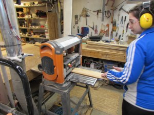Since it has been stored outside, Erin is planing one pass off each side to clean it up.